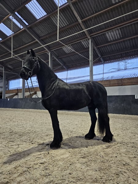 🖤 Friesian Gelding Aarnold 471 – 7 years old – well-behaved family horse with a gentle character For sale: beautiful 7-year-old Friesian gelding Lineage: Aarnold 471 Height: approximately 1.60 m (16.1 hh) With a heavy heart, I am offering him for sale due to my own health issues. ✨ Character & Handling Very sweet and people-oriented family horse Gentle and reliable in daily handling Quiet at the blacksmith, dentist, and when loading onto the trailer 🏇 Riding & Level In the arena: calm and pleasant to ride Easy to mount and ride forward Had a period of rest due to my health, but now ready to continue training Can be a bit fresh outside Not traffic-proof (mostly ridden in the arena) 🩺 Health Mild summer eczema, well-controlled with a rug Overall a honest horse 🎁 Included (optional – added value) Preferably I sell him complete: Custom-made Fryso Comfort AE dressage saddle (17.5 inch) → Fits well and ready to ride immediately Other equipment available upon request 💰 Price Horse: €8,950 Complete (including saddle/equipment): €9,750 📍 Viewing by appointment ✔ Inspection allowed (at own expense) Only sold if there is a good connection and a suitable 5-star home.