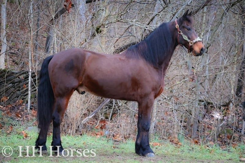 ONLINE AUCTION Place your bids at www.PlatinumEquineAuction.com Starting Bid $3500 Auction ends January 26th, 2025 Need a new saddle? Check out White Rock Saddles on our website or Facebook! Meet “Mr. KATMANDU”, a real gentle, real broke, fun, fancy, and quiet BAY FRIESIAN MORGAN CROSSBRED GELDING. He is broke to ride and drive and will also hook up and work to farm machinery. He is 15.3 hands tall and 9 years old. He has been through our cross country driving course and will cross the rushing water with a buggy or wagon fine. He will also trail ride anywhere you want to go, he is sure footed, honest, brave, and will ride out alone or in a group. He is fun to ride and stops hard, backs up, turns easily, and moves off of leg cues. He is just a real fun Friesian gelding that isn’t too fast and isn’t too slow. He is traffic safe, not spooky, and has no tricks and no surprises. He will lope off with no buck and no hump. He has a nice jog, a good walk, and a steady canter. He likes attention, has excellent ground manners, and he aims to please. He has been driven to town and in the pastures to check cattle. He’s versatile, pretty, smart, and sane. Contact HH Horses Erin 304-238-4155 for more info or to make a Buy It Now Offer. Located in Flemingsburg, KY.