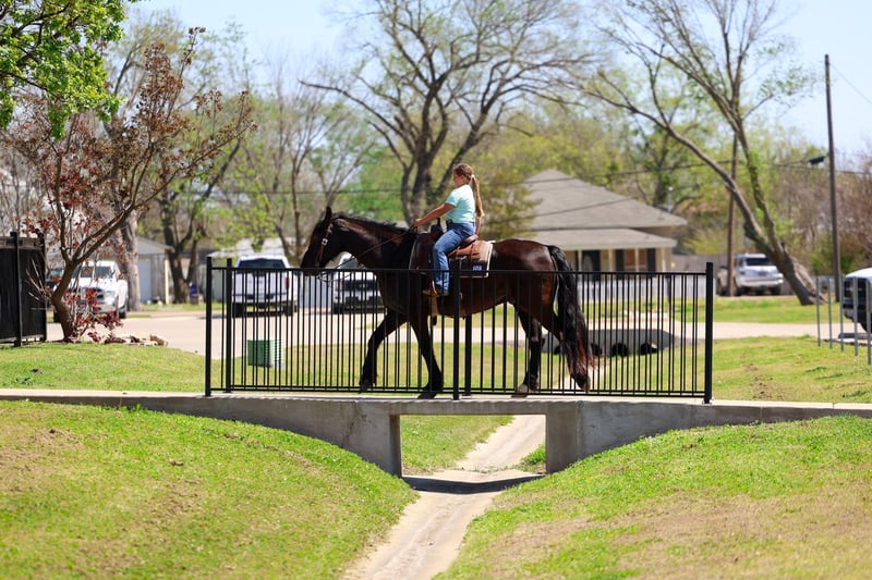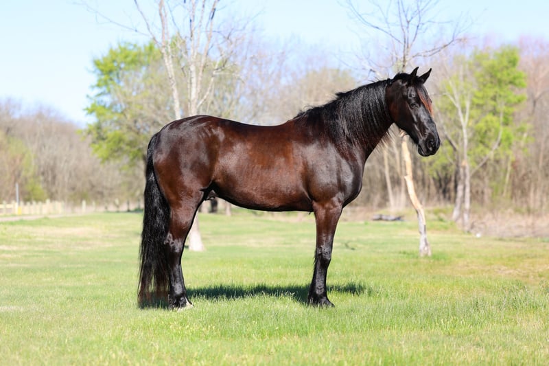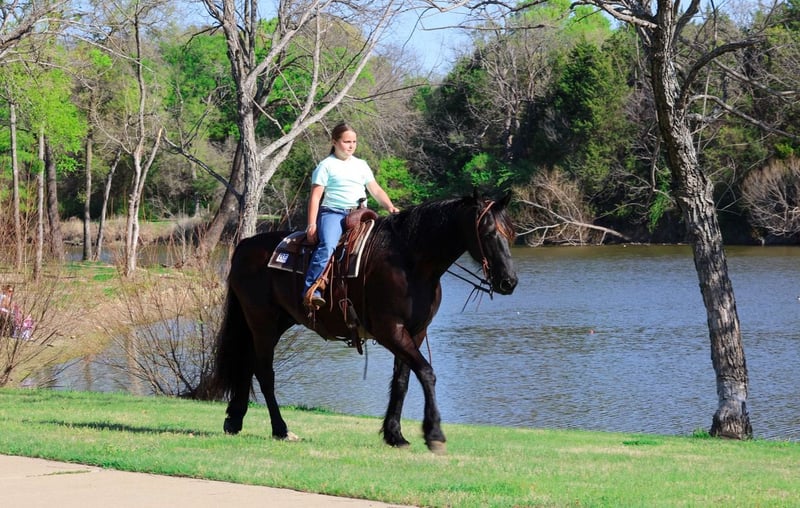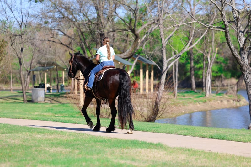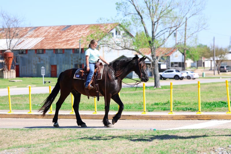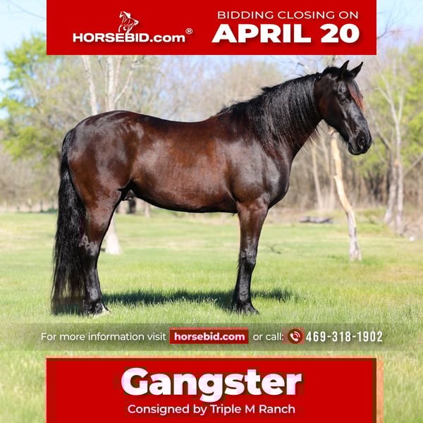 ⚜️𝐭𝐡𝐞 𝓔𝓵𝓲𝓽𝓮 𝐒𝐩𝐫𝐢𝐧𝐠 𝐂𝐥𝐚𝐬𝐬𝐢𝐜⚜️ Happening now thru MONDAY | APRIL 20th - Available EXCLUSIVELY on HorseBid's website! For more details and to register visit: www.Horsebid.com CONSIGNOR CONTACT: Triple M Ranch 469-318-1902 LOCATION: Talty, TX BREED: Friesian REGISTERED: No REGISTERED NAME: Gangster COLOR: Black HEIGHT: 16 AGE: 9 GENDER: Gelding This is "Gangster", the best, most gentle, well broke, PUREBRED FRIESIAN GELDING. He is broke to ride and drive. He stands 16 hands tall and is 9 years old. This is one sweet and kind hearted horse. He is easy to handle, a true gentleman, and can be ridden and driven any where you want go. He has impeccable ground manners, he is obedient, and he aims to please under harness or tack. He has been driven to town and up and down busy roads. He is traffic safe, not spooky, and he rides confident out alone. Gangster is a super trail horse that is sure footed, solid, and honest. He loves attention, he is personable, and likes to go for trail rides. He will cross water, handle steep terrain with no issues, and walks out nicely on a loose rein. He is easy to ride or drive, and he is super comfortable. He has a nice lope, he will work a circles, he will catch his leads, and stop easily. He backs up and moves off of leg cues. He stands tied quietly, he loads, bathes, and hauls with ease. He sells 100% sound with no issues. We will gladly help find and arrange transport. Call us if you have anymore questions about this big beautiful black Friesian.