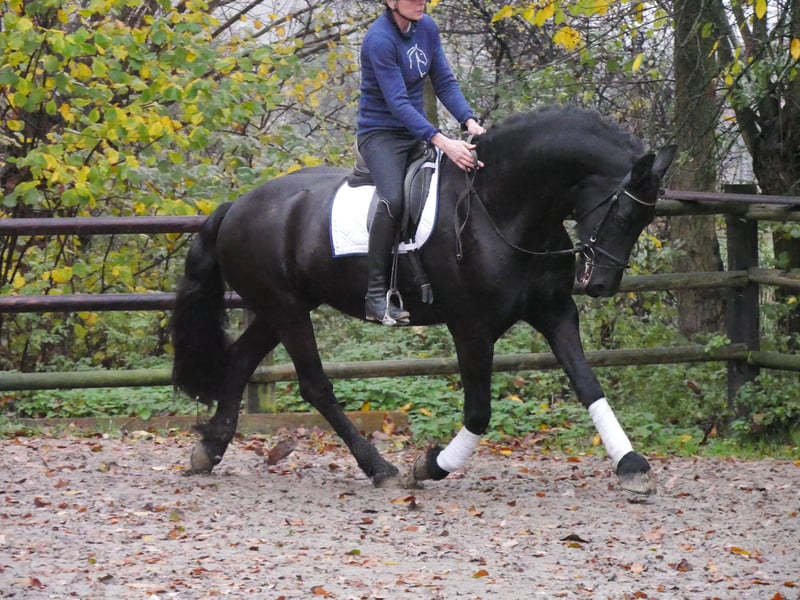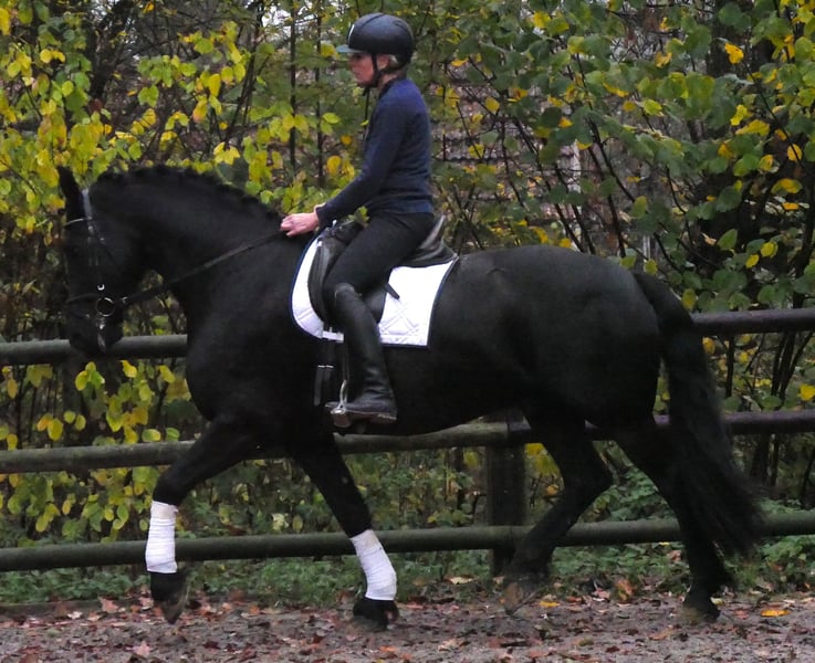 Name: Samur Alter: 9 Jahre Stockmaß: 170 cm Geschlecht: Wallach Rasse: Friese Abstammung: Sir Henry von Jerke x Deichgraf von Dagho Ausbildungsstand: geritten und gefahren Samur ist ein bildschöner, großer Friesen Wallach und sucht ein neues Zuhause. Er ist einspännig gefahren und wird im Gelände , Halle und Platz geritten. Samur ist Anfänger geeignet und kennt es tagsüber auf der Wiese zu stehen. Alles weitere unter der Nummer 0176 62495567