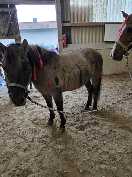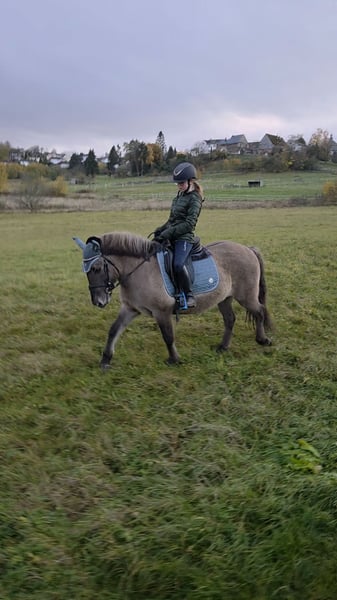 Schweren Herzens und mit weinenden Augen, haben wir uns dazu entschieden, unsere liebenswerte Ponystute "Berta" zu verkaufen. Berta ist dreizehn Jahre alt und gerade im besten Alter. Sie ist ein absolutes Herzenspferd und im Alltag komplett unerschrocken. Wir bringen sie morgens im Winter im Dunkeln auf die Weide, an Autos, Lichtern, Schneepflug, Bussen usw. vorbei und auf sie ist immer Verlass. Sie ist bei uns nie ernsthaft krank gewesen und ist robust. Sie steht im Sommer 24/7 auf der Weide und hatte nie Probleme mit Hufrehe. Sie ist regelmäßig geimpft worden, hat keine Angst vor dem Tierarzt und auch beim Hufschmied ist sie brav. Ebenso wurden regelmäßig die Zähne kontrolliert. Sie ist aktuell barhuf, da sie sehr gute Hufen hat, hatte aber auch mal Eisen drauf. Meine Tochter kann alle Spielereien mit ihr machen, ob Popo rutschen, drauf stellen, unter ihr durch gehen, ist alles kein Problem. Ebenso ist sie in der Herde absolut brav und zeigt sich anderen Pferden gegenüber immer freundlich. Beim Ausreiten ist sie eine Lebensversicherung und bleibt immer bei der Gruppe, bockt und steigt nicht und kann hier auch von kleineren Kindern geritten werden. Wir haben regelmäßig mit ihr am Reitunterricht teilgenommen und auch kleine Sprünge springt sie. Sie liebt es an Agility Kursen teilzunehmen, da sie sich hier absolut unerschrocken zeigt. Gerade Bodenarbeit mit ihrem lieblings Mensch, macht ihr große Freunde. Sie ist trittsicher und gut zu sitzen. Der Grund, warum wir sie abgeben möchten, ist folgender. Meine Tochter hat bereits mit Berta einige Turniere geritten. Von Führzügel bis einfacher Reiterwettbewerb und war auch hier sehr erfolgreich. Leider hat uns Berta gezeigt, dass dies einfach nicht Ihre Welt ist. So geht sie dann Beispielsweise nicht mehr auf den Anhänger, oder rennt einfach aus dem Dressurviereck heraus :( Es ist unfair Berta gegenüber, etwas von ihr zu verlangen, was einfach nicht ihr Ding ist. Sie liebt lange, gemütliche Ausritte, herausfordernde Agility Kurse, Schwimmen gehen.... aber Turniere sind nicht ihre Welt. Deswegen verkaufen wir sie auch nur an absolute Freizeitreiter/innen, die keine Turnierambitionen haben. Sie liebt kleine Kinder und macht bei mir zurzeit das Bambini Reiten, wo 4 Kinder gleichzeitig auf ihr sitzen können. Ob beim Anmalen oder kleinen Spielen mit Bällen, sie bleibt immer ruhig und macht einen tollen Job. Wir verkaufen definitiv nicht in reine Boxenhaltung, sondern entweder in einen Offenstall oder wo stäglicher Weidegang gewährleistet ist. Der emotionale Wert dieses Pony ist für uns unbezahlbar, können aber leider kein weiteres Pferd unterhalten. Berta wird mit kompletten Zubehör abgegeben, einem Wintec Sattel, Trense, Decken, Halfter, Gamaschen, Schabracken usw. Bei Fragen gerne schreiben.