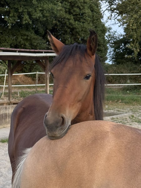 We are looking for a new, loving home for our gentle Connemara cross mare. We unknowingly purchased the mare's mother pregnant, and in March 2024, she gave birth to a foal. Unfortunately, we were not prepared for a foal and, due to time constraints, we now have to find a new home for her with a heavy heart. The mare was raised in a herd and is accustomed to being outside day and night. She has a friendly and social personality and gets along well with other horses. She is used to being tied up and groomed, and she walks calmly on walks. Due to her young age, she still requires gentle and consistent training to develop into a wonderful companion. She is vaccinated against tetanus, knows the farrier, although she still needs some practice, and has a passport and is microchipped. Since the sire is unknown, we cannot say for certain which breed she is, but we believe she is a lovely mix and will thrive in a caring, patient home. An ideal home would have other young horses, as she is very social and appreciates the company of her peers. We are looking for a place where she will receive plenty of time, attention, and patience, so she can grow into a confident, well-behaved horse. If you are interested in giving Grace a new home, please feel free to contact us. We would be happy to hear from you and hope she finds a loving place soon.