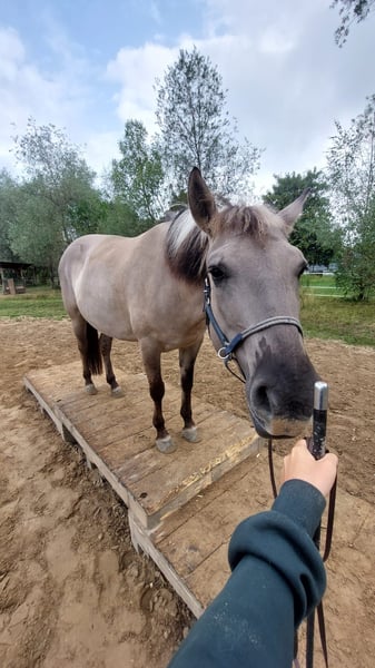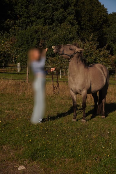 Aufgrund persönlicher Umstände suche ich einen neuen Bestplatz für meine Konikstute. Sie ist 6 Jahre alt, 1,38 m groß mit einem sehr mutig und ehrlichen Charakter. Sie zeigt sich stets selbstbewusst und aufgeschlossen. Hat man einmal ihr Vertrauen gewonnen, geht sie für einen durchs Feuer und ist ein treuer und sehr verlässlicher Begleiter. Aufgewachsen ist sie als Wildpferd und lebt seit ihrem dritten Lebensjahr bei mir. Ich wünsche mir für sie ein Zuhause, in dem sie gefordert wird und an erster Stelle steht. Sie ist gebisslos geritten und am liebsten im Gelände unterwegs. Unter dem Reiter zeigt sie sich stets willig und sehr fein in der Kommunikation. Auch das Laufen am Fahrrad und die Bodenarbeit bereiten ihr großen Spaß. Zuletzt haben wir gemeinsam einen Wanderritt unternommen, bei dem sie ihre coole und selbstbewusste Art erneut bewiesen und große Freude an neuen Umgebungen gezeigt hat. Sie lernt unglaublich schnell und stellt sich gerne Herausforderungen. Sie ist straßensicher und kennt andere Tiere (Hunde, Kühe, Schafe etc.). Ein besonderes Talent sehe ich in ihr beim Wanderreiten oder der Rinder Arbeit. Also im Grunde genommen ein perfektes Ranch Pony:). Aber auch als Therapie und Coachingpferd sehe ich bei ihr Potenzial, da sie sehr lieb und geduldig im Umgang ist. Letzte Woche hatte sie ihren ersten Job als Martinspferd, welchen sie mit Bravour gemeistert hat. Feuer, sowie Blaskapelle und viele Menschen sind überhaupt kein Problem für sie. Auch mit Kindern hat sie einen sehr ruhigen Umgang. Im Jahr 2024 hatte sie einen Reheschub, den wir gut in den Griff bekommen haben. Bei einer angepassten Haltung, sollte sie damit keine Probleme mehr haben. Equipment kann natürlich mit erworben werden. Die Zähne wurden dieses Jahr bereits gemacht. Bei Interesse melde dich gerne bei mir :)