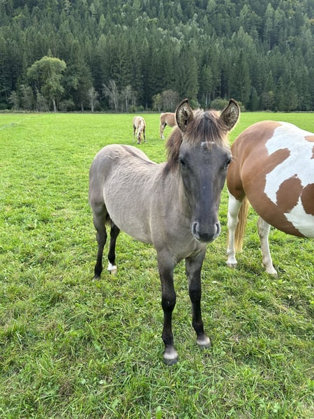 verkaufe mein im März 2025 geborenes Hengstfohlen. Tabaluga ist ein Konik/Haflingermix und wird ca. 140cm groß werden. Er kennt das Fohlen-ABC und ist sehr neugierig und verschmust. Mutter und Vater stehen bei mir am Hof. Der Kleine ist bereits abgesetzt und kann ab sofort ausziehen oder zur weiteren Aufzucht bleiben. Preis verhandelbar. Transport auf Anfrage