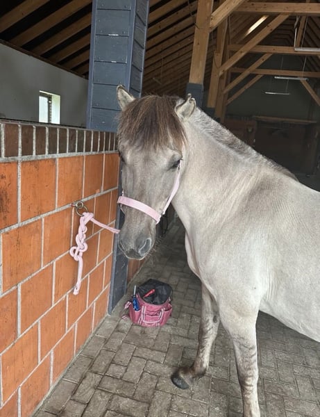 Ein absolut liebenswerter, charakterstarker Ponywallach, der im Umgang super brav ist allerdings typisch Pony, also kein reines Kinderpony. Er lässt sich in allen drei Gangarten reiten und hat viel Freude am Springen. Er ist rangniedrig und damit sehr verträglich mit anderen Pferden, steht gerne in Gesellschaft und ist kein Stressmacher in der Herde. Unser Konik Wallach kam ursprünglich aus Berlin zu uns in den Norden, da er unter Equinem Asthma litt. Seit er hier ist, ist er symptomfrei und rundum gesund und fit. Wichtig ist nur, dass er Heulage statt Heu bekommt dann hat er keinerlei Probleme. Er ist ein tolles Pony für erfahrene Reiter:innen oder Jugendliche, die ein sensibles, freundliches Pony suchen, das Spaß an der Arbeit hat und im Gelände wie auf dem Platz Freude macht. Er ist 15 Jahre alt und hat einen Stockmaß von ungefähr 135cm Bei Interesse oder Fragen gerne melden - wir freuen uns auf liebe Menschen, die ihm ein schönes Zuhause bieten möchten.