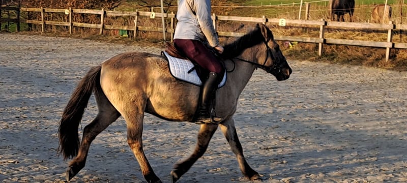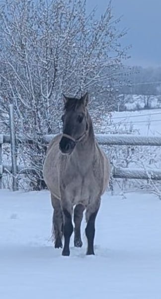 Verkaufe jungen Konik-Wallach, geb. 2021, mit einem Stockmaß von ca. 140 cm. Derzeit befindet sich das Pferd in der Ausbildung da es sich um ein zwar artiges aber sehr schreckhhaftes und sensibles Pony handelt. Mit viel Zeit, Ruhe und Geduld sicherlich am Ende ein zuverlässiger Begleiter. Verkauft wird er nur da wir diese Zeit einfach nicht haben. Er wurde beim Vorbesitzer geritten und zweispännig gefahren. Was ihm dort wiederfahren ist das er soviel Angst hat wissen wir leider nicht. Jack ist aufjedenfall sehr aufgeschlossen , artig beim Schmied und Anhänger fahren ist auch kein Problem. Der Konik ist ein robustes und vielseitiges Pony. Verkauf NICHT als Kinderpony. Die Reiterin auf dem Bild ist 1,75 groß. Bei Interesse freue ich mich auf Ihre Kontaktaufnahme. Aufgrund seiner Unsicherheit ist ein Probereiten nicht möglich.