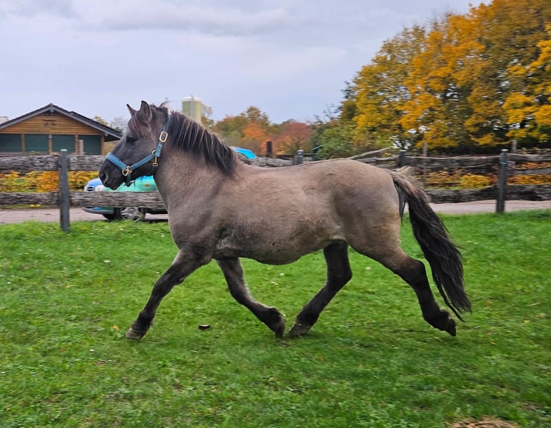 Vellantif is a spirited German colt. His entire herd has been rounded up and will now be sold individually. He is curious, calm, and gentle, but naturally has no prior experience with humans. His castration is scheduled soon. He will also have a passport upon sale. Early meetings are possible. Two younger stallions from his herd are also available here for training and sale. Please contact us by phone at 01639129382 to arrange a viewing appointment.