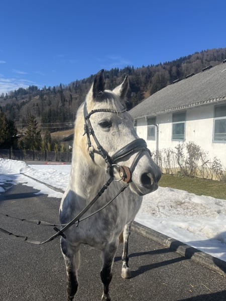 Wir suchen ein perfektes Zuhause für unsere 11-jährige Stute Bettina (Stockmaß 1,47 m). Bettina ist gesund, in bester Verfassung und war stets zuverlässig im Umgang. Sie ist eine sehr freundliche, menschenbezogene und warmherzige Stute, dabei jedoch fein und sensibel im Reiten. Sie verfügt über 3 sehr gute Grundgangarten und reagiert aufmerksam auf feine Hilfen. Aufgrund ihrer Sensibilität sehen wir sie eher bei einem schon etwas fortgeschrittenen Reiter. In der Vergangenheit lief sie gelegentlich im Reitschulbetrieb und kann problemlos von Jugendlichen mit gutem Reiterpassniveau geritten werden. Bettina ist manchmal etwas schreckhaft, grundsätzlich aber immer bemüht, ihrem Reiter zu gefallen. Besonders liebt sie entspannte Ausritte – auch gerne ohne Sattel – und ist ein echtes Traumpferd für alle, die Freude an Bodenarbeit haben, da sie sehr aufmerksam und fein reagiert. Zudem ist Bettina als Zuchtstute eingetragen (Abstammung: V: Quettino de Florys; MV: King Kalido B). Wir geben Betti nur schweren Herzens ab, da ihre Besitzerin aus der Ponygröße herausgewachsen ist und wünschen uns für sie einen liebevollen Platz. (Platz vor Preis.) Hinweis: Bettina koppt gelegentlich. Dies hat keinerlei Einfluss auf ihre Gesundheit oder Leistungsfähigkeit.