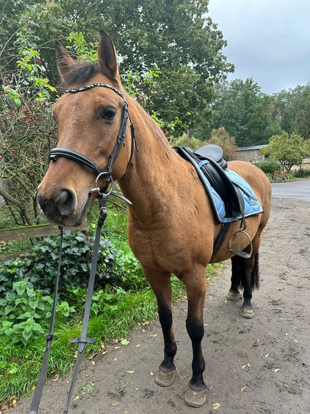 Wunderschöne Kowalski-Norweger Mix Stute, noch topfit, umständehalber als Freizeitpferd in gute und erfahrene Hände anzugeben. Ausbildung klassisch Dressur, Western und Natural Horsemanship. Geländegängig, verladefromm. Haltung bisher Robusthaltung in gemischten Herden und reinen Stutenherden. Equipment Western und Klassisch komplett mit abzugeben (je Sattel, Trensen und Pads) inkl. Western Sattelschrank.