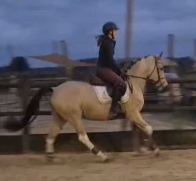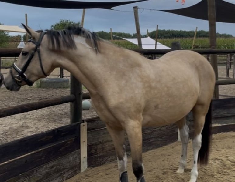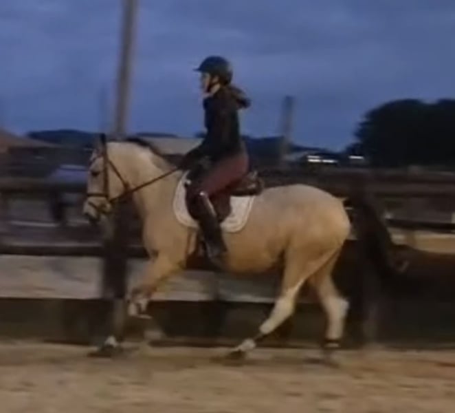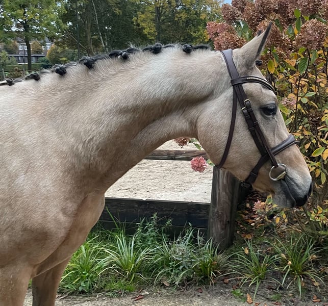 Caeldori EYE-CATCHER Für alle, die auf der Suche nach etwas Besonderem sind: eine 3,5-jährige NRPS D-Pony-Stute: - Stute - ca. 1,46 m groß - v. Leuns Velds Winston Jr. - Falbont mit viel Weiß, ein echter Blickfang!!! Caeldori ist ein äußerst liebevolles und hübsches Pony mit großem Potenzial für den Sport und die Zucht. Sie verfügt über drei gute und korrekte Grundgangarten. Als Fohlen erreichte sie bereits den ersten Platz und die erste Prämie bei der Fohlenschau! Sie ist sattelfest und nimmt die Arbeit sehr gut, schnell und brav auf! Außerdem hat sie schon einmal einen Sprung unter dem Sattel gemacht, was sie sehr gut gemeistert hat! Auch im Wald und an der Straße ist sie brav. Beim Satteln hat sie keinen Fehler gemacht. Natürlich ist sie noch jung und etwas grün, daher noch nicht für den Anfänger geeignet, aber mit der richtigen Betreuung und Training denke ich, dass sie dafür letztlich geeignet sein könnte! Sie steht uns nicht im Weg und wir werden sie behutsam weiter ausbilden, aber sie darf auch zu jemandem ziehen, der mit einer jungen Pony weiter wachsen möchte! Sie ist frei von (Haltungs-)Mängeln und zeigt sich brav beim Transport, beim Schmied etc. Sie wurde noch nie geröntgt, natürlich gegen Kosten des Käufers. Videos sind vorhanden, bitte bei Interesse selbst per WhatsApp oder Nachricht anfragen! Bei Interesse gerne eine Nachricht oder einen Anruf/WhatsApp an +31612090029. Bitte nach 17:00 Uhr anrufen.