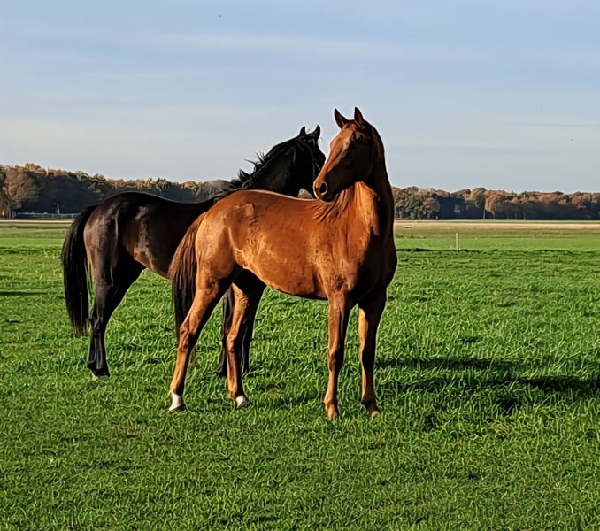 Aansprekende merrie, met goede gangen! En mooie bloedlijnen. Nog geheel naar eigen hand te zetten, komt zo uit het land. Zal naar verwachting een goed sportpaard worden, onder de ervaren ruiter.