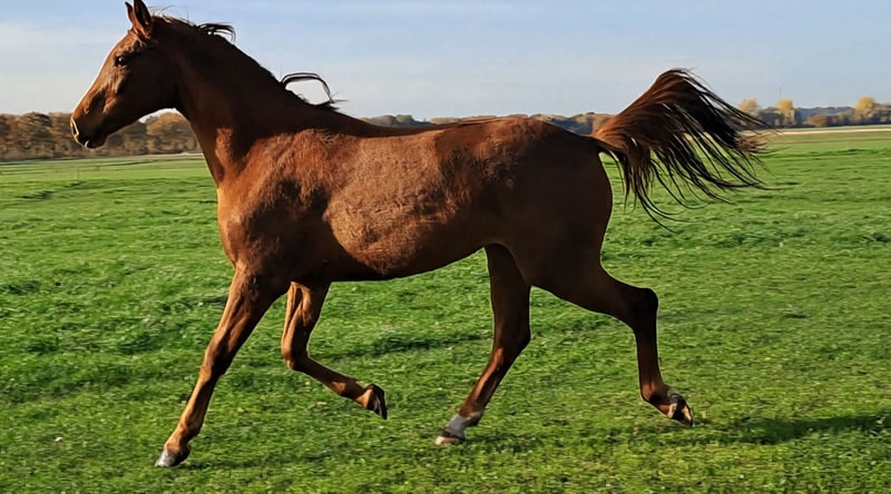 Przyciągająca uwagę klacz o dobrych chodach! Piękne linie krwi. Wciąż do własnej aranżacji, właśnie przybyła z kraju. Oczekuje się, że będzie świetnym koniem sportowym pod doświadczonym jeźdźcem.