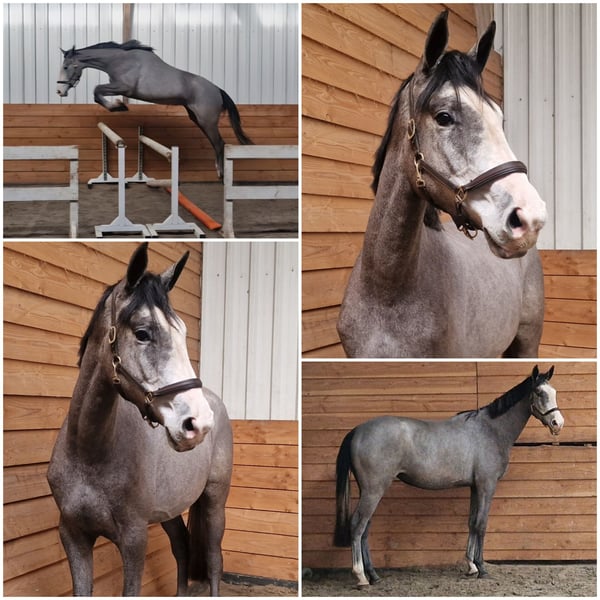 Solid three-year-old show jumping mare Pedigree: Mc Jump 4 Gold x Zirocco Blue x Sheraton x Jus de Pomme From a top dam line! Born in 2023 with an approximate height of 1.67 m (16.1 hh). A high-quality mare! Recently out of the broodmare group. Friendly and affectionate temperament. Her X-rays have been taken, including neck and back. For more information, please call or WhatsApp at 0613704472.
