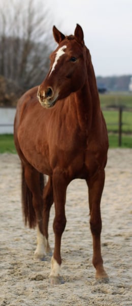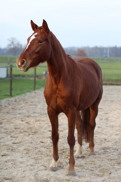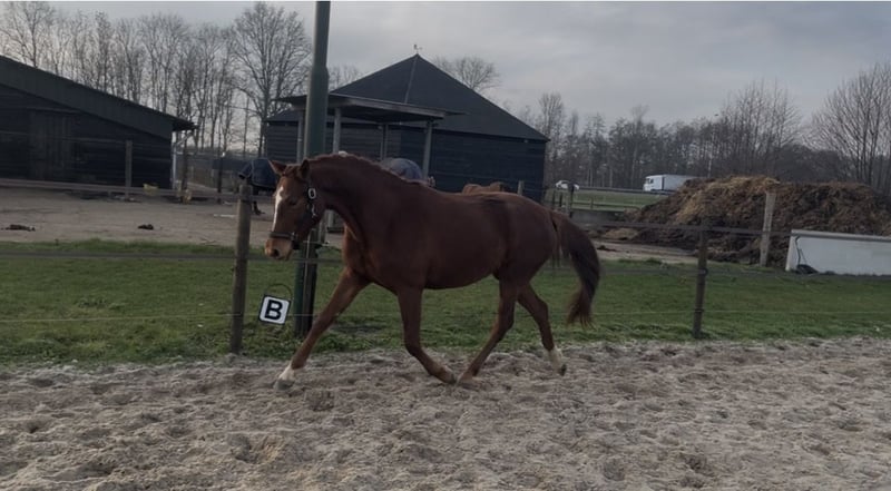 Mooie jonge merrie aangeboden, nu 3,5. Ze is nog helemaal naar eigen hand te zetten en groen. Loopt braaf mee aan een halster. Helaas ontbreekt het mij echt qua tijd om lekker met haar aan de gang te gaan, wegens jong gezin en andere paarden. Met pijn in mijn hart heb ik besloten of ik een andere plek voor haar kan vinden, waar ze wel rustig opgepakt kan gaan worden. Het is een hele vriendelijke en nieuwsgierige merrie, wil graag wat ondernemen, maar ze heeft zeker wel karakter. Ze heeft ook een mooi papier, dus ook zeker interessant voor de fokkerij. Op dit moment is ze ongeveer 1.60, maar ik verwacht dat ze nog wel aardig gaat groeien (ook aldus dierenarts/chiropractor). Is bij de tandarts geweest en behandeld door een chiropractor. 9-2-‘26 klinisch goed gekeurd.