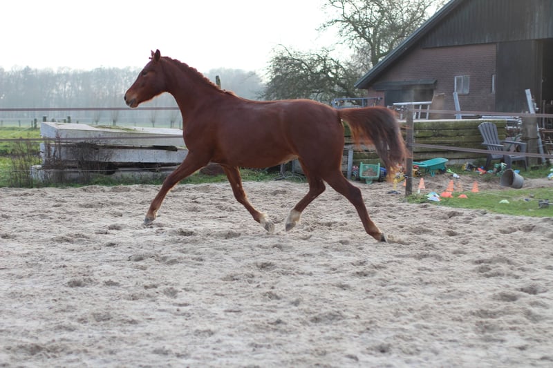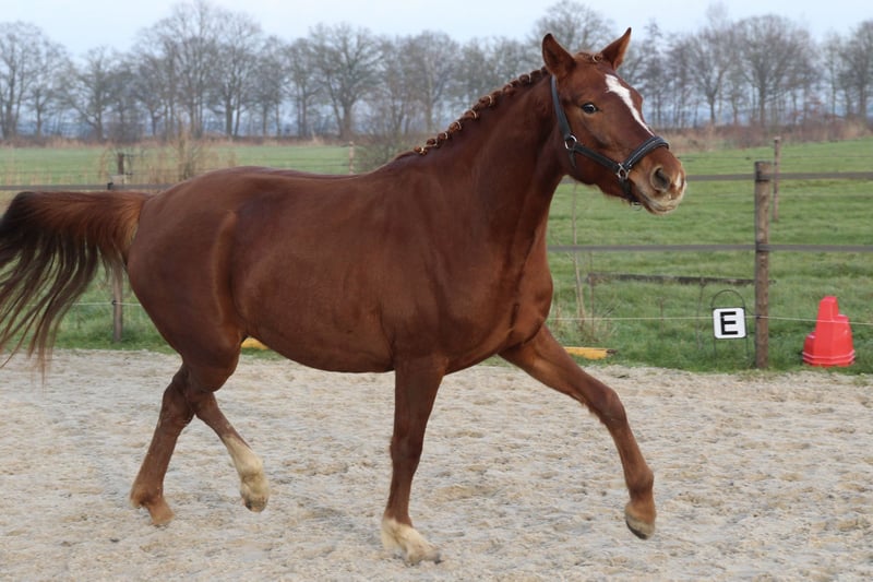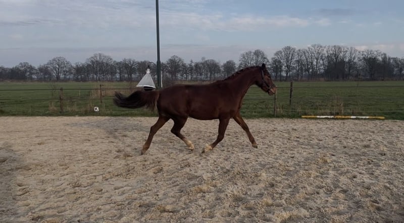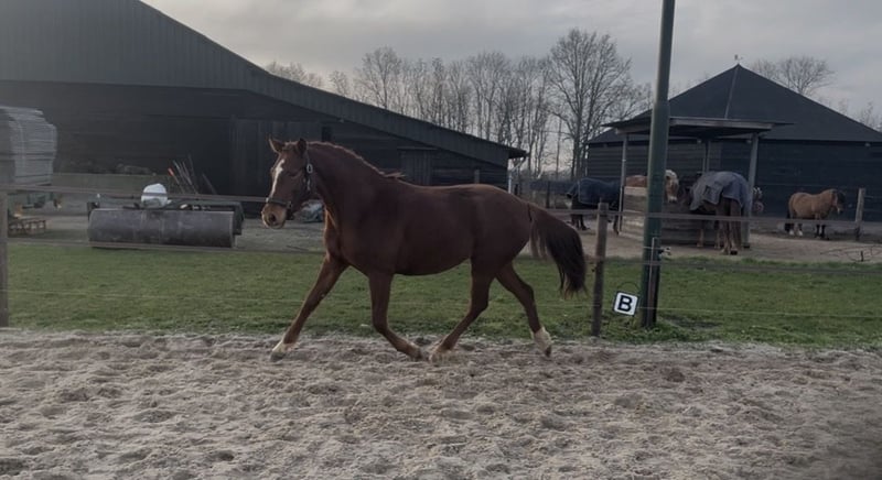 Beautiful young mare offered, currently 3.5 years old. She is still very much her own person and quite green. She walks calmly on a halter. Unfortunately, I truly lack the time to work with her properly due to a young family and other horses. With a heavy heart, I have decided to look for a new home where she can be gently brought along. She is a very friendly and curious mare, eager to learn, but she definitely has her character. She also has good papers, making her an interesting prospect for breeding. At the moment, she is approximately 1.60 meters (about 15.3 hh), but I expect her to grow quite a bit more (also confirmed by the veterinarian/chiropractor). Videos will follow.