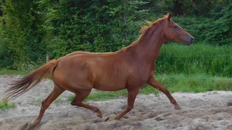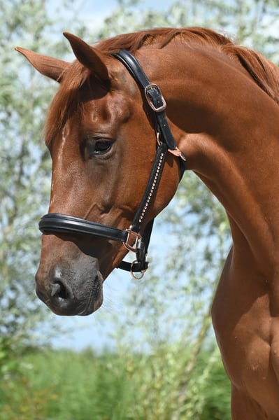 Isarah van Drakensteyn, auch bekannt als Saar, ist seit April 2022 bei uns und mittlerweile gut zadelbar. Sie ist ein äußerst liebenswürdiges, menschenbezogenes Pferd, das auch sehr sozial im Umgang mit anderen Pferden ist und problemlos in einer (gemischten) Herde läuft. Ihr Charakter ist äußerst angenehm. Sie hat eine schlanke Konstitution und misst etwa 1,65/1,66 m, ist jedoch noch sehr jung und wird sicherlich noch etwas wachsen… Die Amazone auf dem Foto ist 1,78 m groß. Saar ist sehr korrekt gebaut, mit geraden Beinen und guten Hufen. Sie wurde im Juli 2025 röntgenologisch ohne Befunde, inklusive Hals und Rücken, freigegeben. Die Röntgenbilder sind sehr gut! Vor der Ausbildung wurde sie außerdem tierärztlich beim Zahnarzt behandelt. Ihr Vater ist der prächtige Hengst Vainqueur (Vivaldi x Rubioso), der in Deutschland unter Dorothee Schneider erfolgreich in der Grand Prix-Dressur läuft. Ihre Mutter ist eine erfolgreiche GP-Stute des Hengstes Sorento (Sandro Hit x Donnerhall), die jetzt 19 Jahre alt ist. Saar war ihr erstes Fohlen (vierte Generation eigener Zucht) und im letzten Jahr wurde sie von dem Hengst Red Viper gedeckt. Diese Stute hat nach wie vor wunderschöne, trockene Beine und ist äußerst gesund. Hinter ihr steht der GP-Hengst Rubiquil (Rubinstein x Roemer), mit dem Laurens van Lieren seine Karriere begonnen hat. Saar wäre besonders geeignet für eine Reiterin, die den Übergang von Ponys zu Pferden machen möchte, allerdings ist sie nicht für unerfahrene oder unsichere Reiter geeignet. Sie ist schnell, sensibel – aber auf eine gute Weise –, zeigt niemals Buckeln oder Steigen und bleibt beim Aufsteigen stets ruhig stehen. Sie ist auch für die Zucht sehr interessant. Der Verkauf erfolgt vorbehaltlich der Genehmigung und liegt im oberen Preissegment. Möchtest du diese schöne orangefarbene Dame kennenlernen? Das ist möglich, sende mir eine WhatsApp-Nachricht (aufgrund der Arbeit kein Anruf). Saar steht momentan in der Mitte des Landes und kommt Anfang Mai wieder nach Hause (bei Amsterdam). Bitte nur per WhatsApp melden: 06-11343740