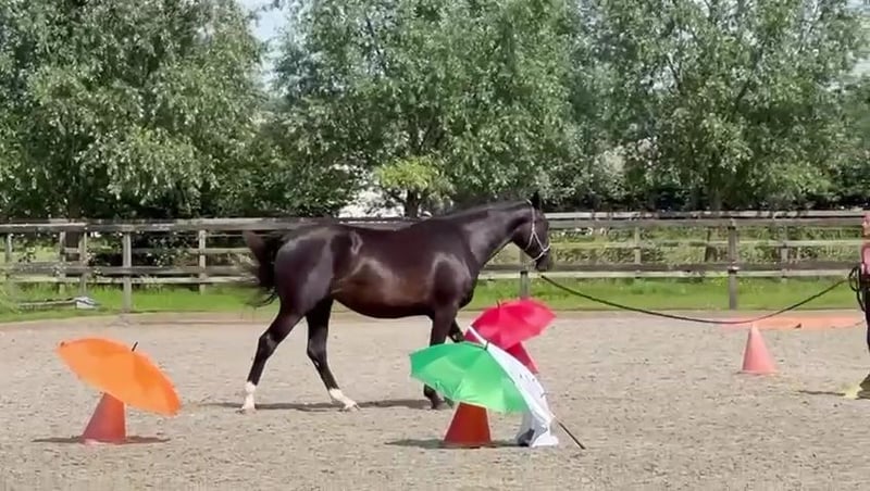 ✨ Mooie 4‑jarige merrie — ideaal voor wie houdt van een uitdaging/project ✨ Brave 4‑jarige merrie, zadelmak en heeft reeds enkele wedstrijden gelopen. Op verplaatsing is ze bomproof en kijkt werkelijk naar niets om, waardoor ze naast de sport ook heel geschikt is als betrouwbaar wandelpaard. Afstamming Apache v/h Trichelhof (Negro × Ferro) × Yana v/h Trichelhof (Rubels / Rubenstein I × Ragazzo). Dankzij deze sterke bloedlijnen is ze eveneens geschikt als toekomstige fokmerrie. Voor het rijden vraagt ze een zelfzekere, ervaren ruiter die graag met jonge paarden werkt en houdt van een uitdaging of project. Ze heeft een eerlijk karakter, maar heeft iemand nodig die haar op een rustige, consequente manier verder wil opleiden. Momenteel wordt ze niet bereden en loopt ze op de weide om verder uit te groeien. Het rijden zal dus opnieuw rustig opgebouwd moeten worden. In de omgang is het een superlieve merrie. Kent het laden op een camion en van. Veel grondwerk en schriktraining gedaan Ze is volledig gezond - osteopaat, tanden en vaccinaties in orde. Volledig RX‑goedgekeurd zonder bemerkingen, inclusief hals en rug Heeft lichte zomereczeem en draagt hiervoor een halsstuk, wat goed helpt Goede thuis is heel belangrijk Vorige eigenaar wil graag nog contact houden Valt onder de normale prijsklasse Veel filmpjes beschikbaar :-) Bij interesse of verdere info mag je gerust een bericht sturen