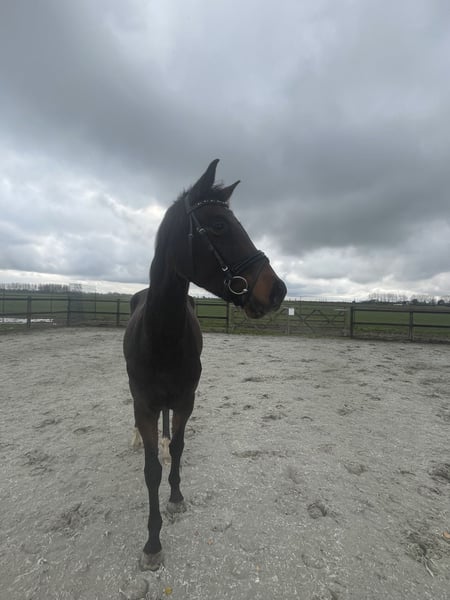 Loes van d’n Duijl is a very sweet mare, approximately 16.1 hands (not officially measured). She is saddle trained and walks nicely in a round. She is extremely gentle in handling, and children can walk around with her comfortably. She is also social with other horses. She has no stable vices and remains calm in the stable even when the others leave. She is accustomed to heavy traffic and behaves well on the road. All inspections are permitted at the buyer's expense. Feel free to send a message if you have any questions! 😁