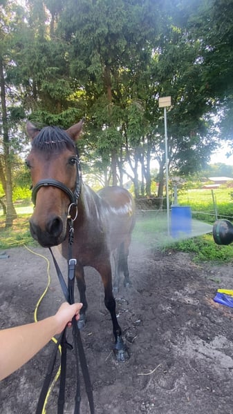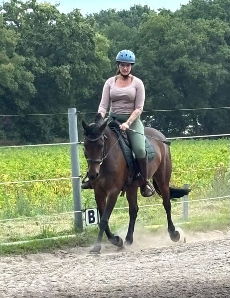 Eine aussagekräftige Abstammung bietet May. Von dem Gasir ox A aus der Myske van Knedo. Sie zeigt sich als Allrounder und kann sich in allen Bereichen blicken lassen. In der Vielseitigkeit/Ausritte hat May am meisten Motivation. Leider eignet sie sich nicht für die Therapie da sie Schwierigkeiten mit verschiedenen Materialien. Im Kontakt mit Materialen der Therapie geht May oftmals kurz in das Fluchtverhalten. Es ist alles im Rahmen, jedoch für Kunden nicht Tragbar. Leider leidet sie an einem Sommerexem der mut Schüsslersalze gut im Griff war. Sie wird mit sämtlichen Zubehör wie hochwertiger, voll ausgestatter Dressursattel mit Eskadron Schabracke und Bandagen, 2x Halfter, ca. 4 Decken, Kappzaum, Trense mit angepasstem Gebiss, Pflegeutensilien und Boxenschild.