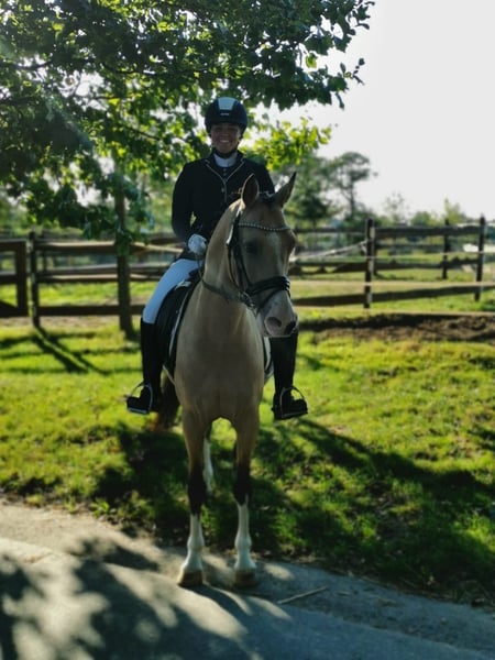 Vielseitiger Ambitionierter Wallach Le Beau Filou sucht ein neues 5* Zuhause. Filou ist ca 142 cm groß und 14 Jahre alt. Er ist ein Niederländisches Reitpony. Er verzaubert nicht nur mit seinem Bildschönen Aussehen sondern auch mit seiner verschmusten und freundlichen Art. Filou ist in der Dressur sicher in einigen L Lektionen ausgebildet. Auf dem Turnier ist er bis A* vorgestellt und sowie platziert. In der E Dressur sowie im Springen war er bereits Siegreich. Auch im Springen zeigt er sehr viel potenzial. Hier ist er bis A* auf dem Turnier vorgestellt worden und im Training ist er auf gutem A/L Niveau. Auch durch einige Reitabzeichen 4 und 5 hat er seine Reiter zuverlässig getragen. Er kennt den Alltag mit Kindern und bleibt hierbei stets entspannt. Derzeit wird er von einem neun jährigen Mädchen an der Longe geritten. Er war mit dem Ponyshowteam (Springquadrille) auf Messen wie z.B. der Equitana unterwegs und ist dort in Shows aufgetreten. Filou geht gerne in einer Gruppe als auch alleine ins Gelände. Dinge wie mit Halsring oder ohne Sattel geritten zu werden meistert er ohne Probleme. Filou ist Verlade und Schmiedefrom. Sowie Entwurmt, Geimpft und Tuniereingetragen. Eine große AKU aus 2025 ist bereits vorhanden. Ebenso hat er eine OP Versicherung, die gerne mit übernommen werden kann. Bei Interesse melden Sie sich bitte unter 0176-41237626 per WhatsApp oder SMS