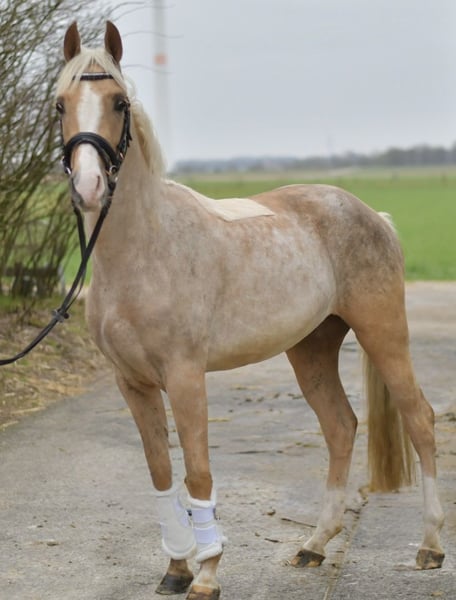 Entdecken Sie Milo, unser zauberhaftes Palominopony – ein wahrer Rohdiamant für Reiter! Milo ist bereits angeritten und beherrscht alle drei Gangarten (Schritt, Trab, Galopp) mit Bravour. Er steht am Anfang seiner Ausbildung und bietet Ihnen die einmalige Gelegenheit, ihn selbst weiter auszubilden und zu formen. Seine Talente und Möglichkeiten sind nahezu unbegrenzt! Aktuell wird Milo von uns weiter trainiert, sodass Sie die Option haben, die Ausbildung nach dem Kauf fortzusetzen. Gerne begleiten wir Sie auch weiterhin auf diesem spannenden Weg, um das volle Potenzial Ihres neuen Begleiters auszuschöpfen. **Besonderes Angebot:** Bei sofortiger Mitnahme erhalten Sie 5% Rabatt auf den Verkaufspreis! Nutzen Sie diese Gelegenheit und sichern Sie sich Ihr neues Traumpony. **Probereiten:** Überzeugen Sie sich selbst von Milos Charme und seinen Fähigkeiten! Sie sind herzlich eingeladen, ihn bei uns auszuprobieren. Die Kosten für das Vorreiten oder Probereiten betragen 30 € pro Person. Wir freuen uns darauf, Ihnen Milo vorzustellen! Kommen Sie vorbei und lassen Sie sich verzaubern!