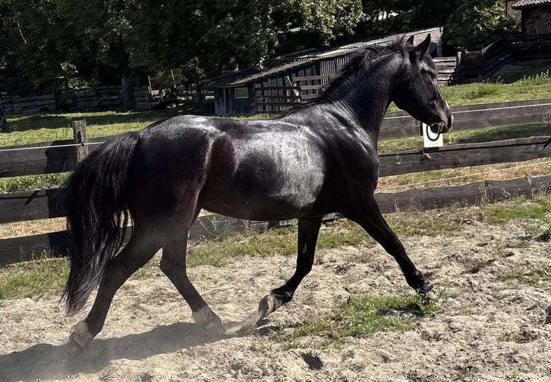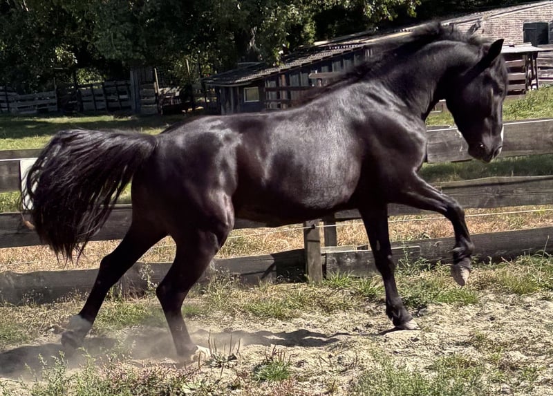 Who wouldn't fall in love with him? ⭐️ Meet Jack, a beautiful black pearl with a stunning appearance and an honest, sweet, and affectionate character! 🐴 About Jack: • Age: 3/4 years • Height: 1.43 m (still growing a bit, especially in width) • Recently vaccinated • Familiar with lunging with a saddle – responds super well to voice commands! • Has a passport (Hungarian sport pony, no known pedigree) Character: Jack is a sweet, honest, cheerful, and eager little guy with an open and social character. He radiates positive energy and is incredibly social and friendly towards other horses. Future talent: This sweetheart is ready to be further developed and completely tailored to your needs. He came to me from the breeding and is now ready for the next step. Jack has the potential to be a true all-rounder – he could excel in: 🏇 Eventing • Jumping • Dressage • Carriage driving • And much more! With the right guidance, he will also be a fantastic pony for children. Jack will only go to a super home where he will receive the love and attention he deserves. Are you the one who can offer Jack a golden future? Feel free to send a message or WhatsApp to +31 6 45866198 for a meeting or a “date” with this sweetheart. 💕 📍 Location: Zwartewaal 📍 Province: South Holland