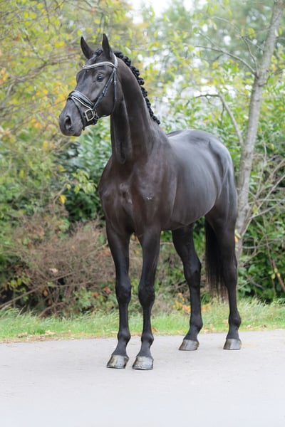 True-Pleasure (Naqueen x Apache) Nació el 10 de mayo de 2022. True está bien preparado para la silla y es muy agradable de montar. Posee movimientos por encima de la media. True ha sido revisado radiológicamente, se disponen de radiografías y informe. Para ver vídeos, por favor envíe un WhatsApp al 0636510812.
