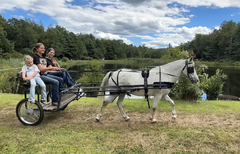 🐴 𝒕𝒉𝒆 𝐅𝐀𝐋𝐋 ℙ𝕆ℕ𝕐 𝑺𝒑𝒆𝒄𝒕𝒂𝒄𝒖𝒍𝒂𝒓🐴 Happening now thru MONDAY | SEPTEMBER 29th - Available EXCLUSIVELY on Ponybid's website! For more details and to register visit: www.Ponybid.com CONSIGNOR CONTACT: Red Stone Farm 860-387-5378 LOCATION: Granville, MA BREED: POA REGISTERED: No COLOR: Red/White HEIGHT: 12 AGE: 13 GENDER: Gelding T. Rex is a 13 year old red/white POA gelding standing about 12 hands high. This adorable guy is a been there done that pony. He's slow, quiet, cuddly and in your pocket. T. Rex is the pony you want for your kids, he is a true baby sitter. He knows his job is to keep his littles safe and happy! T. Rex is the MOST patient pony. He handles everything our 4yr old daughter throws at him. He will pack down the trail ridden independently or ponied off another horse, loves to go through the water and safe in traffic. We have encountered many dogs and wildlife out on our trail rides and T. Rex handles it all. He rides western and english and has the most comfortable little canter. He has jumped a cross-rail and crosses over tarps and logs. He spent this last summer teaching some lunge line through W/T/C lessons to beginners and loved all the extra attention from his riders. He has even been around some cattle. This pony is also an amazing driver, for anyone. He stands politely for you to get in the cart and will go wherever you point him. Our kids, who know nothing about driving have driven him all through the state forest. He is reliable and well educated. He stands quietly for grooming, saddling and loves a bath. Around the farm he gets along with everyone and is so easy to live with. No vices or issues or special requirements for him. He ties, crossties and stand great for vet and farrier. He lives in a loud home, wild children, chickens, dogs, equipment and multiple quads always flying around him and he never bats an eye. T. Rex has been trailered out for trail rides, gymkhanas and shows, he is the same pony off property. T.Rex is up to date with farrier, veterinarian work and worming. He is an easy keeper and his only special requirement is love.