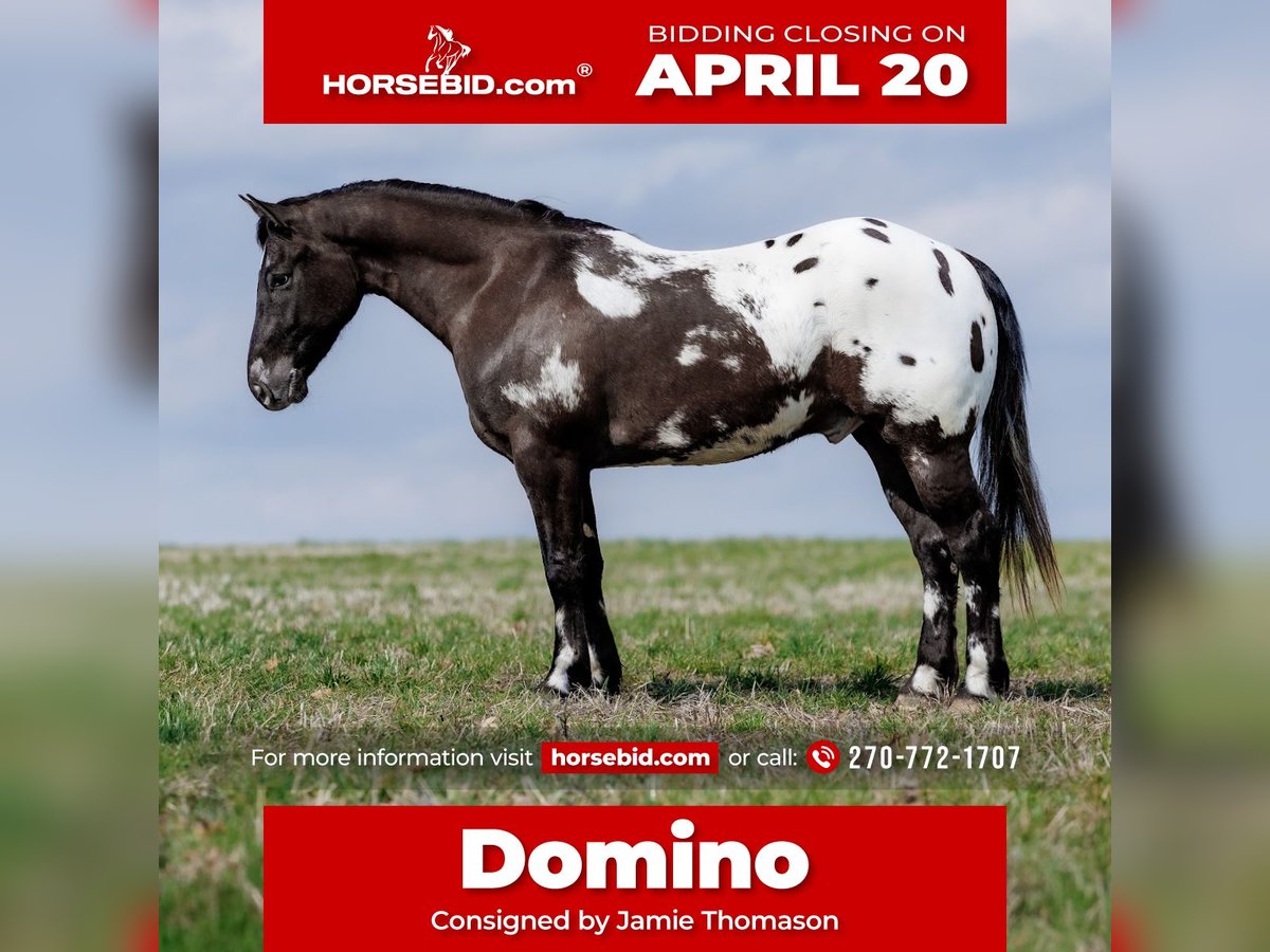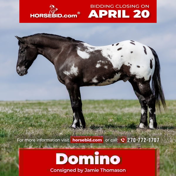 ⚜️𝐭𝐡𝐞 𝓔𝓵𝓲𝓽𝓮 𝐒𝐩𝐫𝐢𝐧𝐠 𝐂𝐥𝐚𝐬𝐬𝐢𝐜⚜️ Happening now thru MONDAY | APRIL 20th - Available EXCLUSIVELY on HorseBid's website! For more details and to register visit: www.Horsebid.com CONSIGNOR CONTACT: Jamie Thomason 270-772-1707 LOCATION: Auburn, KY BREED: POA/Percheron Cross REGISTERED: No COLOR: Bay/White Blanket HEIGHT: 14.2 AGE: 5 GENDER: Gelding Make a statement with DOMINO! He’s unique and eye-catching! A 5-year-old POA/Percheron cross gelding, standing 14.2 hands. He offers a sturdy build paired with a fun and upbeat disposition. Domino has been put to work at the stockyard penning and sorting cattle, as well as gathering and sorting on the farm alongside stock dogs. Opens and closes gates with ease, and is no stranger to a days work. Out on the trail, he’s a confident, point-and-go type that has been enjoyed by my daughter. He is sure-footed and dependable, he navigates uneven, rocky terrain without hesitation, crosses deep water, bridges, and travels up and down inclines. Nothing seems to phase him, he carries the flag, unbothered by the tarp, and is comfortable around ATVs, UTVs, farm equipment, dogs, and other livestock. Domino has a friendly personality and is always easy to catch. He loads and hauls without issue, can be stalled or live outside, and fits nicely into a mixed herd. With great feet, he’s currently barefoot and maintained on a regular trim schedule. From the farm to the trail, Domino is a solid, dependable partner that’s ready to go in any direction. If you want a handsome, capable gelding that will get you noticed while staying safe, this is your guy. Domino sells current on all cares. If you have any other questions or would like to meet Domino, feel free to reach out! PPE’s welcome & we can assist in arranging transportation to anywhere!