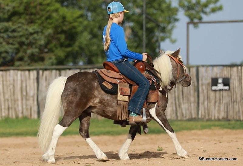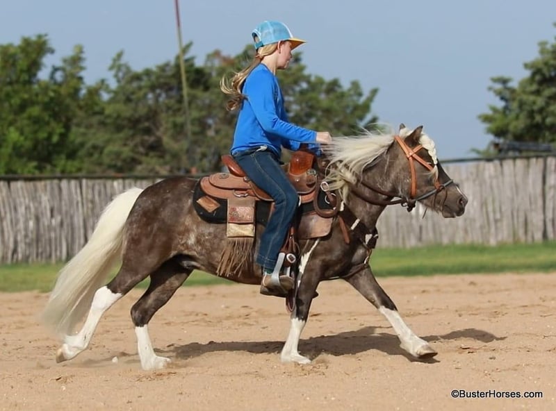 ONLINE AUCTION Place your bids at www.PlatinumEquineAuction.com Starting Bid $3500 Auction ends September 8th, 2024 Need a new saddle? Check out White Rock Saddles on our website or Facebook! “Island Cowboy” – 9.3H, 5 year old silver chocolate palomino paint pony gelding. Cowboy loves attention, trail rides, treats, and late night bareback shenanigans! He is the sweetest, kind-est little guy – you can literally feed him your fingers and he knows the difference and will gently push them back out of his mouth!!! He is really nice to ride around, has the softest little smooth trot, and great stop and even has a little rollback and handle to him! He rides GREAT bareback in just a little loping hack or halter, but will also ride in a saddle and bridle. He loves exploring and going to new places, and will ride out anywhere you point him. He goes out well both alone and in a group. School started this past week, and my daughter has not had near as much time to ride and play with him…well, she created her own solution, and literally got grounded for sneaking out EVEN EARLIER than we already get up (at 4AM), so that she had time to ride Cowboy. He is a special kind boy and definitely one of the most unique marked ponies that you can find! Cowboy was just shod last week and his teeth were also done by an equine dentist last month, at the same time he had his sheath cleaned, his ears preemptively treated for ticks, and he was also power packed wormed. He is up to date and ready to go to work! To see lots of additional videos, go to our website: BusterHorses.com or our Facebook page Buster Horses. Please call anytime for more information at 214-605-7174 Cowboy is located in Weatherford, TX – only one hour from Dallas / Fort Worth International Airport. He is an easy day trip or fun overnight trip to come try out, from anywhere! We are experienced, knowledgeable sellers, and we can help with quickly arranging affordable shipping to any buyer’s location – we have experience shipping worldwide – including regularly to Hawaii, Canada, Mexico, Europe, and South Africa. Check our website for buyer reviews, more videos, additional info, etc: https://busterhorses.com/Island-Cowboy. ONLINE AUCTION Place your bids at www.PlatinumEquineAuction.com Starting Bid $3500 Auction ends September 8th, 2024 Need a new saddle? Check out White Rock Saddles on our website or Facebook!