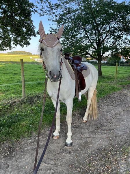 Schweren Herzens suche ich für meine liebe Stute Curlea ein neues, passendes Zuhause. Steckbrief: Rasse: Connemara Geschlecht: Stute Stockmaß: 147 cm Alter: 10 Jahre Farbe: Weiß Nutzung: Freizeit geritten Barhuf Ausstattung (bei Wunsch gegen Aufpreis übernehmbar): Angepasster Westernsattel Trense Decken Hufschuhe Halfter, Stricke Putzkasten Zu mir Curlea: Ich bin vom Händler direkt zu meiner Besitzerin gezogen und lebe seit her bei ihr. Leider kann sie aus finanziellen Gründen das nicht mehr stemmen. Ich bin sehr verschmust, liebe es gekrault zu werden und bin für jeden Spaß zu haben. Ich liebe es lange Spaziergänge oder Ausritte zu machen und übe gerne Zirkuslektionen. Langsam dürfen die Ponys gehen, ich halte sehr gut bei den großen mit und laufe auch gerne mal etwas schneller, triebig ist mir ein Fremdwort. Daher solltest du schon etwas Erfahrung haben und viel Spaß am Ausreiten mitbringen. Zusammengefasst: Wenn du auf der Suche nach einer treuen Freizeitpartnerin bist, die dich durchs Gelände trägt, Spaß an Ausritten hat und dir viel Freude bereitet, dann könnte Curlea genau die Richtige für dich sein. Curlea steht in der Nähe von Thedinghausen und kann gerne kennengelernt werden. Kontakt: schreib mich bitte einfach an und erzähl ein bisschen was über dich;) Keine Abgabe an Händler