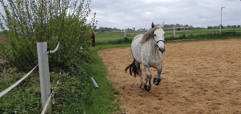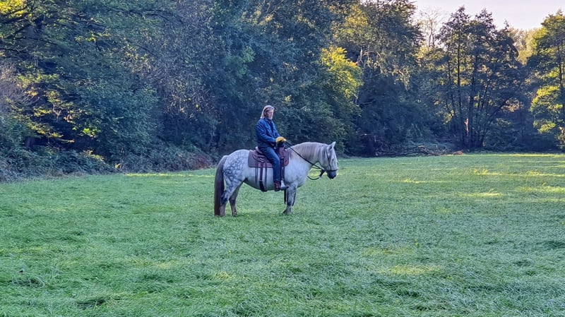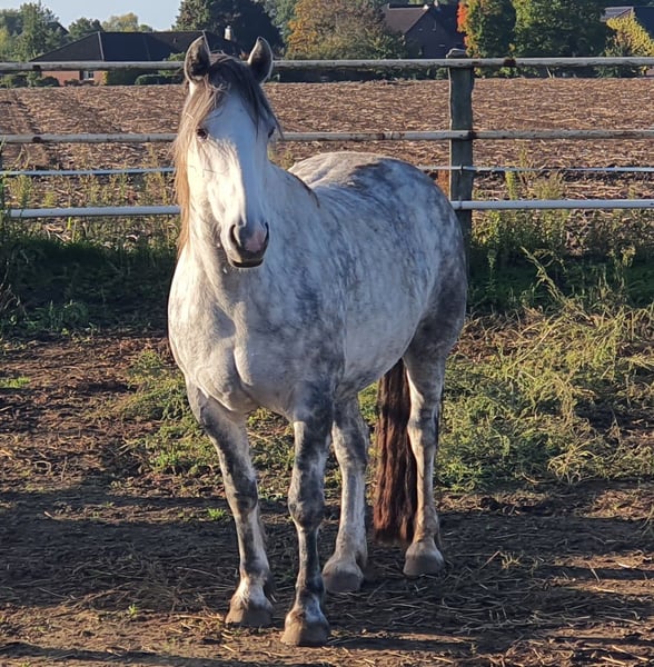 Schweren Herzens suchen wir ein neues, liebevolles Zuhause für unsere einzigartige Stute “Nevada Sky”. Diese wunderschöne Connemara (80%) - Tinker-Mix Dame ist mit ihren 12 Jahren im besten Alter und ein absolutes Verlasspferd in allen Lebenslagen. Nevada Sky ist im Umgang ein wahrer Traum: Stets freundlich, ruhig und ausgeglichen. Sie ist absolut geländesicher, sowohl alleine als auch in der Gruppe, und meistert jede Situation mit Bravour. Egal ob beim Schmied, beim Verladen oder im täglichen Umgang – Nevada Sky ist stets kooperativ und lieb. Sie wurde von mir (selbst Trainer-B) im Horsemanship umfassend ausgebildet. Nevada Sky wird freizeitmäßig Western und mit Bosal geritten und zeigt sich dabei stets fein und motiviert. Sie ist nicht nur ein Pferd, sondern ein treuer Begleiter und Partner, der mit dir durch dick und dünn geht. Auch wenn Nevada völlig beschwerdefrei ist, wollen wir folgendes nicht verschweigen: Nevada zeigte im Sommer 2024 eine allergische Reaktion in Form eines Asthmaanfalls, da sie am alten Standort unvermeidbar Schimmelsporen ausgesetzt war. Dieser Zustand hat sich durch den Standortwechsel vollständig korrigiert. Heute ist sie beschwerdefrei und zeigt eine beeindruckende Vitalität. Ein Zuhause, das passt, ist wichtiger als der Preis! Dies ist keine leere Floskel, sondern mein voller Ernst. Nevada Sky liegt mir sehr am Herzen, und ich wünsche mir für sie ein Zuhause, in dem sie weiterhin geliebt und gefördert wird. Der VB-Preis beträgt 3.500 €. Optional kann ein hochwertiges, alt-kalifornisches Hackamore sowie ein handgefertigter Wade-Sattel gegen Aufpreis miterworben werden, um das perfekte Gesamtpaket für deinen neuen Begleiter zu schnüren. Suchst du eine loyale Partnerin, die dich zuverlässig durchs Leben trägt? Dann könnte Nevada Sky dein Seelenpferd sein! Interesse? Melde dich gerne für weitere Informationen und ein Kennenlernen.