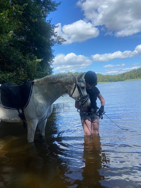 Schweren Herzens muss ich mich von meiner Connemara Stute Ballinaboy Princess (genannt „Ballina“) trennen, da ich aufs Großpferd umsteige. Sie ist 12 Jahre alt (am 10.05. wird sie 13) und hat Spaß an der Dressurarbeit! Beim Springen ist sie mit einem sicheren, konsequenten Reiter auf gutem A-Niveau und hat Spaß am Springen. In der Dressur war ich dieses Jahr schon einmal los. Wir sind eine A-Dressur gestartet. Dort war sie überhaupt nicht glotzig oder schreckhaft. Auch in der täglichen Arbeit hat sie sehr viel Spaß, wie zum Beispiel beim Ausreiten. Sie ist ein sehr verlässlicher Partner, der ein gesundes Go nach vorne hat. Selbst mein kleiner Neffe saß schon auf ihr im Schritt und im Trab und sie ist dort immer sehr artig und bemüht. Sie ist ein prima Lehrmeister! Sie wird inklusive Zubehör verkauft! Bei Interesse bitte unter der Telefonnummer 0162 1500444 anrufen. Bitte KEINE Händler oder Schulbetriebe!