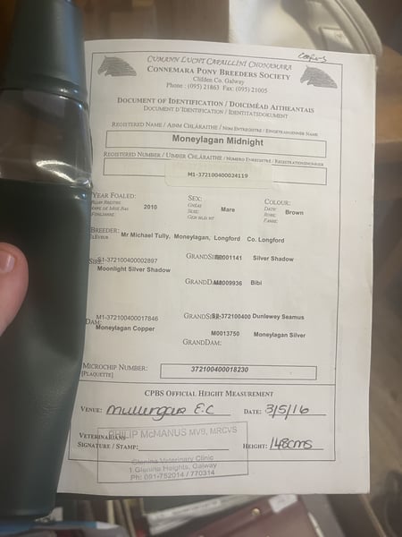 Midnight is a 15yo reg Connemara mare 148cm Full recorded pedigree. 🍀 She has been awarded Class 1 status. Sire: Moonlight Silver Shadow Damsire: Dunlewey Seamus Beautiful pony, she has a great model and temperament. Quiet and easy nature. She is a steady and safe, simple riding pony. Hacks out very well and is great in traffic. Doing the basics in the school and rides nicely through her paces. Schooled over poles and small x country fences. A lovely hobby horse type, will make a nice friend to her next owner. No issues or vices! Price €2,800 Located in Sligo, Ireland. Regular professional transport available if required. No vices, injuries or illness. Open to vetting / on site trials. For further information or videos please contact Edward on 00353871412129. All enquiries welcome!