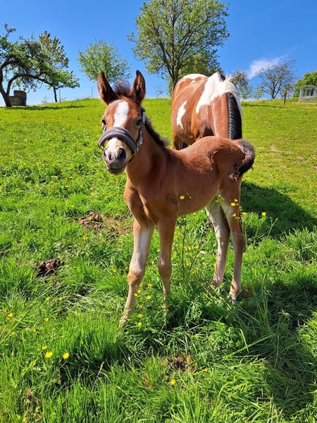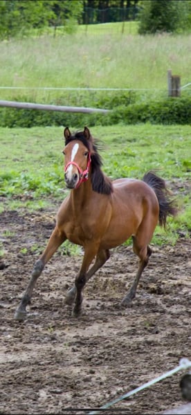 ✨ Samira – jument Pinto-Arabe x Connemara affectueuse cherche son foyer pour toujours ✨ Notre jolie Samira, née le 30.04.2023, cherche dès maintenant un nouveau foyer aimant. C'est une jument Pinto-Arabe x Connemara avec une taille actuelle d'environ 1,45 m au garrot et elle est encore dans son état brut. Samira se distingue par son caractère doux et sensible et se montre toujours ouverte et attentive envers les humains. Elle est curieuse, apprend vite et possède les meilleures conditions pour une formation future. Elle a été régulièrement vermifugée et a été présentée au maréchal-ferrant. Pendant l'été, elle a pu passer du temps avec des congénères dans les alpages. Un excellent cheval de loisir en perspective – pour quelqu'un qui aime éduquer une jeune jument avec patience et cœur. 📍 Localisation : Basse-Autriche, district de Melk 💰 2.5🥕🥕 ❤️ Un bon endroit est particulièrement important pour nous.