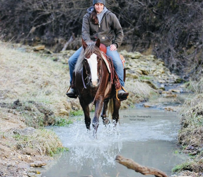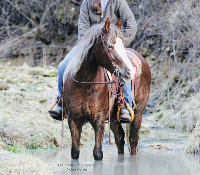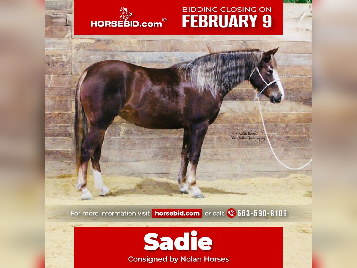 ❤️🔥𝑩𝒆 𝑴𝒊𝒏𝒆 𝐒𝐄𝐋𝐄𝐂𝐓❤️🔥 Happening now thru MONDAY | FEBRUARY 9th - Available EXCLUSIVELY on HorseBid's website! For more details and to register visit: www.Horsebid.com CONSIGNOR CONTACT: Nolan Horses 563-590-8109 LOCATION: Peosta, IA BREED: American Connemara Pony Society REGISTERED: Yes REGISTERED NAME: Wednesday's Etoile De Paris COLOR: Chestnut HEIGHT: 14.2 AGE: 4 GENDER: Mare Sadie is a striking 4-year-old, 14.2 hh chestnut mare registered with the American Connemara Pony Society. She is an exceptional mover with the presence, balance, and substance to excel in the sport-horse world. We purchased Sadie directly from the breeders who raised her from a foal, making us only her second owner. She offers excellent bone, a strong build, and the kind of substance that allows her to go in a variety of directions. Sadie is a correct, balanced mover with natural rhythm and quality gaits. She demonstrates a ground-covering walk, a beautiful, flowing trot, and a balanced lope with easy, correct circles. In the arena, Sadie stands quietly to be mounted, bends softly at the poll, works willingly off leg pressure, stops well, and backs up smoothly. She has been exposed to tarps and has been ridden english and started over small jumps, showing athleticism and a willing attitude. Outside the arena, Sadie has been trail ridden and confidently navigates logs, ditches, hills, and water. She is brave and forward on the trails, going out with confidence and curiosity. She has also been lightly started under harness, further showcasing her versatility. Sadie is a pleasure to handle on the ground. She stands tied all day, is excellent for the veterinarian and farrier, easy to catch, and stands quietly for brushing, saddling, and bridling. She enjoys a bath, is good with fly spray, and is happy either stalled or turned out with other horses. Athletic, versatile, and stylish, Sadie is well suited for a hunter, sport pony, or all-around program. She is a lovely prospect for someone looking to bring along a talented young pony with quality, presence, and a solid foundation. 100% sound.