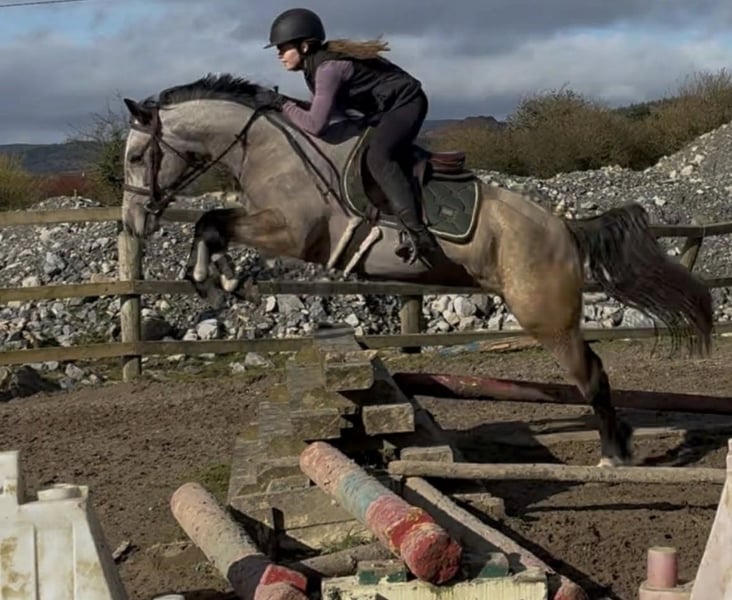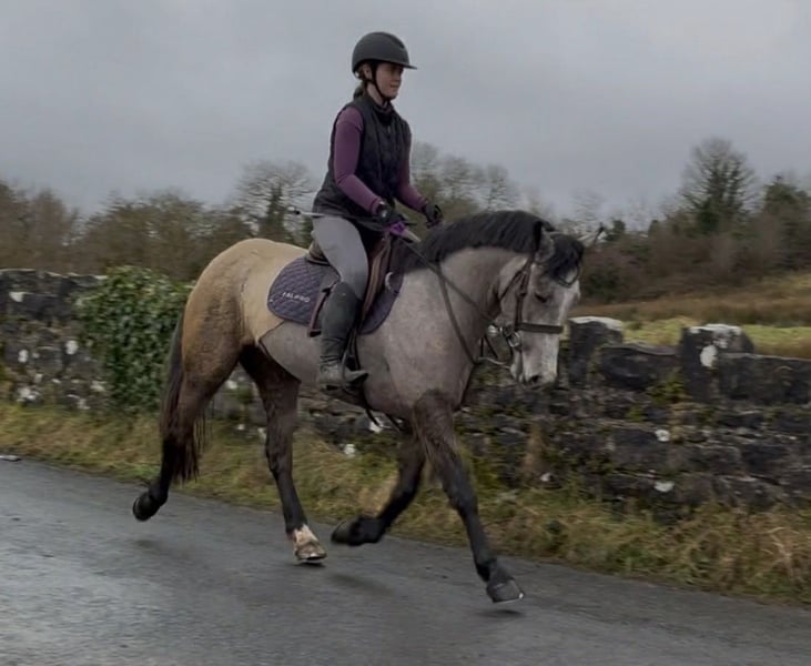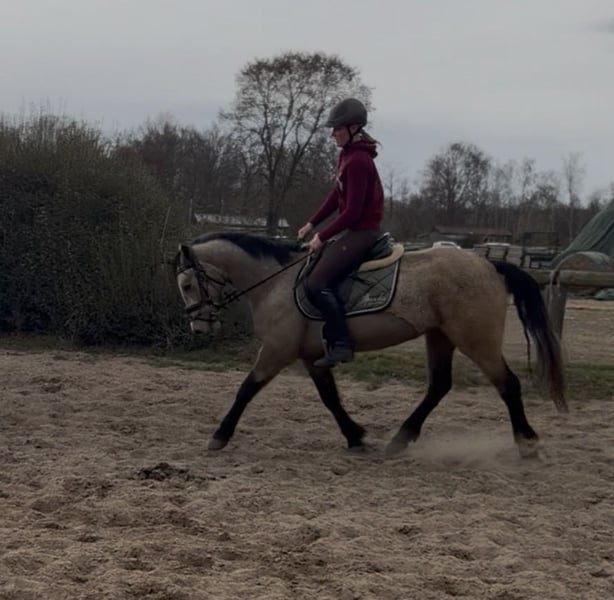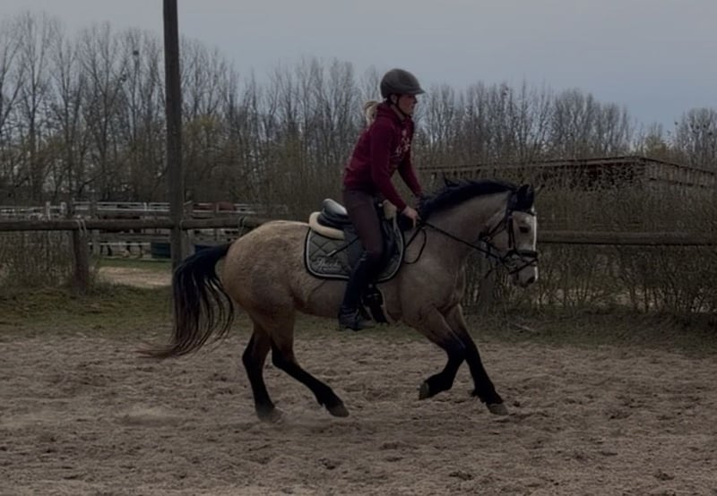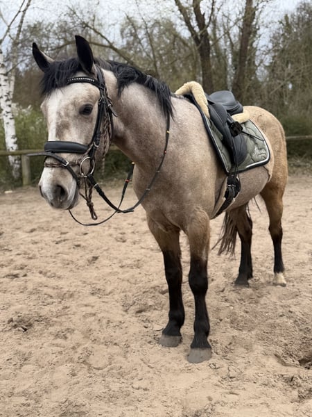 This incredibly adorable mare is looking for her dream home. Leona is 4 years old, currently measures approximately 147 cm at the withers, and has a heart of gold. She is very easy to ride, always eager to please, and consistently strives to give her very best. She possesses excellent nerves and good movement. We can easily imagine her as a junior pony for beginners or as an entry-level competitor in show jumping. She has a great passion for jumping and is also very responsive and soft in the dressage arena on both reins. In handling, she is very well-behaved and uncomplicated! She is highly talented, always eager to please, and happily goes out on hacks. Leona enjoys her work immensely and can comfortably carry larger riders. She has full breeding papers and would also be suitable for breeding purposes. If you want to add a sweet little cuddle pony to your family, please feel free to contact us!