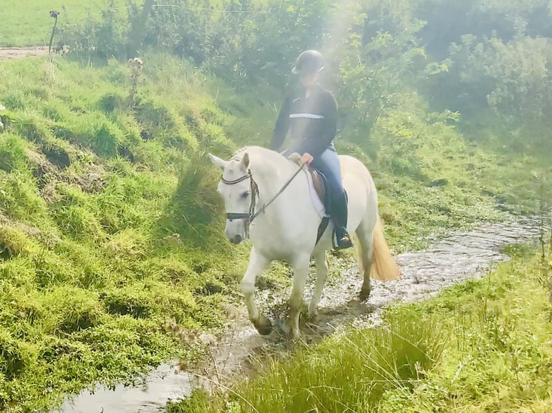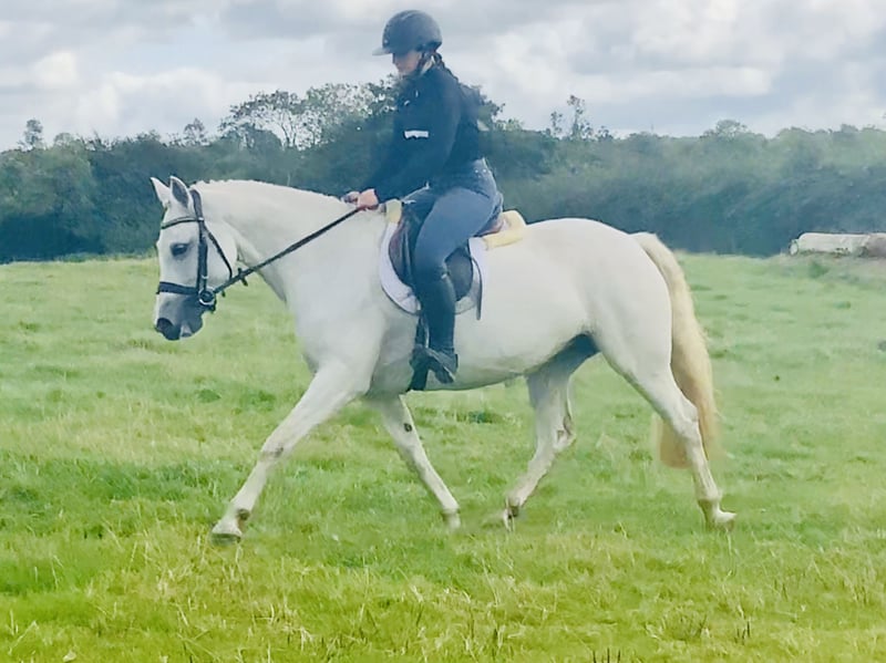 Grace: A Connemara Mare Straight Out of a Fairytale Such ponies do not come to market every day. Grace is an exceptional 4-year-old Class 1 Connemara mare, standing at 1.52 m (15hh). She combines charisma, quality, and character in a way that is rarely found. With her stunning snow-white coat, pretty noble head, and correct conformation, she is a true dream horse – so beautiful that you have to look twice. But Grace impresses not only with her appearance but also with her uniquely sweet nature. Grace has already competed successfully in the show circuit: 1st place in the ridden class for 4- and 5-year-old ponies at the Sceilig Connemara Festival, as well as 3rd place in the same class at the Charleville Show. Additionally, she has hunted a full season with the Duhallow Foxhounds and has shown excellently in several training jumps. Whether in the arena or out on the trails – she remains calm, honest, and cooperative at all times. She is a pony you can fully trust – calm, well-behaved, and reliable in every situation. Grace is suitable for beginners, as a mother-child pony, or for riding schools. She is easy to handle, uncomplicated for the farrier, loads well, behaves well in the stable, and is safe in traffic – even around large agricultural machinery. She goes out alone or in a group, is strong-minded, and always in good spirits. Under saddle, Grace is a true joy: She moves freely on the bit, has a soft mouth, and responds sensitively to aids. Her movements are expressive and elegant – with a floating trot and a well-balanced, uphill canter. She is honest and uncomplicated when jumping, confidently taking on every task without hesitation – whether pole work, jumping, or cross country. Grace has no stable vices and has been recently examined by a veterinarian (including a clean vet check) and is open to any follow-up examinations. She has the potential for many disciplines – whether dressage, jumping, eventing, hunting, or simply as a reliable leisure pony. With her clear mindset, eagerness to learn, and honest character, she is the perfect all-rounder. Pedigree: Grace comes from the best lineage: Her father is Hillside Joker, a Connemara stallion known for his balanced temperament and excellent movement. Her mother, Hanna’s Day, is a daughter of Loughwell Paddy, who in turn is descended from the influential Castlestrange Fionn. These lines represent willingness to perform, type, and character – a combination that is reflected in Grace in every respect. Further Information: Grace is being sold with a current, clean veterinary certificate, is open to any follow-up examinations, and the price includes delivery to your home in the UK. In the rare case that she does not fit perfectly with you, we offer an exchange – your satisfaction is our top priority. 📞 Feel free to call me anytime: 00353 86 807 7626 📧 Or write to me: gertytynan@gmail.com ⸻ Such ponies are one of a kind. Don’t miss the opportunity to secure this extraordinary dream horse.