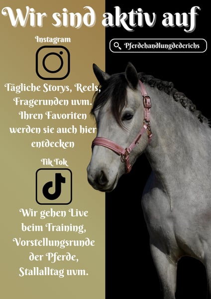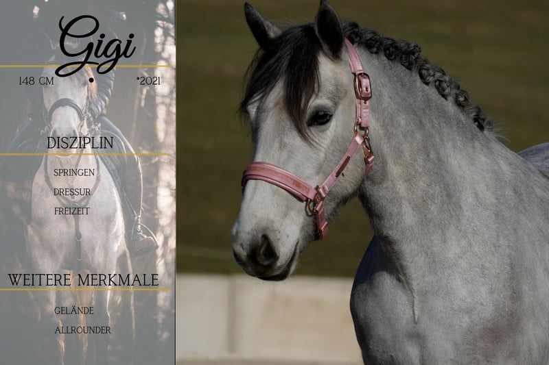 Gigi ist eine 5 Jährige Stute ca. 148 cm *Gigi* ist ein bildschönes Allroundpony. Läuft super schön in der Bahn, macht einen guten Sprung und ist super cool im Gelände. Gigi bringt alles mit was man sich wünscht. !!! SCHAUEN SIE SICH UNBEDINGT IHR VIDEO AN !!! Gigi hat einen tollen Charakter, möchte immer gefallen und ist nicht stutig. Sie bringt 3 schöne GGA mit und ist dabei gut zu sitzen. Beim Springen versucht sie immer alles möglich zu machen und im Gelände auch in fremder Umgebung geht sie brav alleine und in der Gruppe. Verpassen Sie nicht die Chance auf solch ein Traumpony. Ein aktuelles Video finden Sie hier in der Anzeige oder unter folgendem Link: https://www.youtube.com/watch?v=Rh4uBJ9ZG50 Pferdehandlung Dederichs – Ihr Partner für den Pferdekauf Kontakt & Erreichbarkeit: Anfragen bitte ausschließlich telefonisch unter 0173/9792139 Montag – Freitag: 09:00 – 18:00 Uhr Samstag: 09:00 – 15:00 Uhr Sonntag: Ruhetag Folgen Sie uns auf Social Media! Erleben Sie unseren Alltag mit den Verkaufspferden auf Instagram, TikTok & Facebook unter Pferdehandlung Dederichs Rabatt: Bei sofortiger Mitnahme Ihres neuen Traumpferdes erhalten Sie zwischen 5 %– 10 % Rabatt Probereiten & Vorführen: • Probereiten: 40 € pro Pferd (max. 2 Reiter), Betrag wird beim Kauf angerechnet • Feiertage: Proberitt 50 € • Vorführung durch unsere Bereiter: 30 € pro Pferd (Vorreiten, Bodenarbeit etc.) Ankaufsuntersuchung & Transport: • Viele unserer Pferde besitzen bereits eine AKU • Sie können selbstverständlich Ihren eigenen Tierarzt mitbringen • Gerne organisieren wir eine Untersuchung • Wir unterstützen Sie auch gerne beim Transport ins neue Zuhause Weitere Verkaufspferde: In unserem Stall stehen weitere Verkaufspferde, die noch nicht online sind. Falls Ihr Traumpferd noch nicht dabei ist, zögern Sie nicht, uns zu kontaktieren. Wichtige Hinweise: • Stockmaß-Angaben sind geschätzt und nicht exakt nachgemessen • Alle Beschreibungen sind subjektive Einschätzungen des Verkäufers und keine zugesicherten Eigenschaften