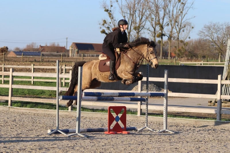 Connemara – 5-year-old mare – 14.2–14.3 hh Goldie is a particularly gentle and sweet 5-year-old Connemara mare with a beautiful, compact build. She is very pleasant to handle: social with other horses and completely free of typical mare behavior. She also travels very easily. Under saddle, Goldie has plenty of power and enthusiasm. She remains consistently well-behaved and is easy to control, but due to her forward temperament, she is especially suitable for experienced riders who enjoy riding with challenge and energy. In jumping, Goldie demonstrates great ability and enthusiasm. She effortlessly clears 4’0” (1.20 m), always with plenty of GO. She never refuses. Goldie was fully veterinary and clinical checked on 24/06/2025 (legs, back, and neck), with no remarks. 📞 More info: +32 475 68 22 43 🎥 Videos: available on our website (upon request)