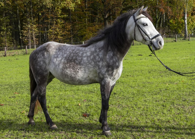 Nuestra escuela de equitación busca un nuevo hogar para nuestro cariñoso e intacto pony de tamaño definitivo, Sky. Sky es un pony extremadamente estable nerviosamente, tanto en el campo como en el picadero. Ya sea sola o en grupo, siempre se puede confiar en ella. Nuestros alumnos de equitación la han presentado en pruebas de jóvenes jinetes y en concursos de salto. En todas las ocasiones, ha sido siempre tranquila y mentalmente clara. No tiene problema en ser cargada en el remolque, ni en visitas al herrador o al veterinario. En nuestra finca, Sky vive en un paddock con otros ponis, en un grupo mixto, aunque también está acostumbrada a estar en box. Es una yegua dominante que, con una guía firme, acompañará a su jinete en las buenas y en las malas, y es una auténtica joya. Creemos que, por ello, sería mejor que esté en un entorno privado. Si está interesado o tiene alguna pregunta, no dude en contactarme.