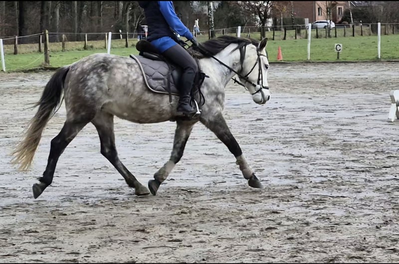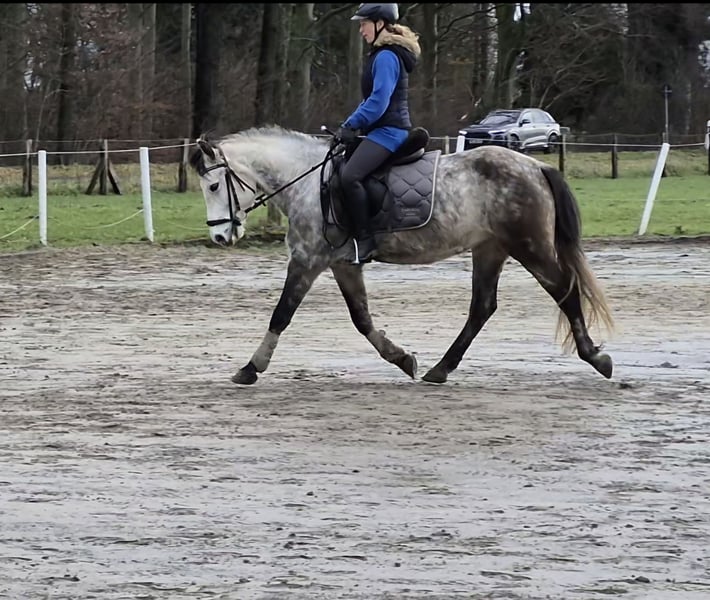 Unsere Reitschule sucht ein neues Zuhause für unser unverbrauchtes Endmaßpony Sky. Wir haben sie 5 jährig Angeritten, weshalb sie sich noch am Anfang ihrer Ausbildung befindet. Unsere Reitschüler stellten sie schon in Jugend- & Springreiterprüfungen vor. Dabei war sie immer brav und kopfklar. Im Gelände zeigt sich Sky als sehr nervenstarkes und unerschrockenes Pony. Ob alleine oder in der Gruppe, auf sie ist immer Verlass. Bei uns lebt Sky im Offenstall in einer gemischten Ponyherde, kennt allerdings auch die Boxenhaltung. Sie ist eine dominante Stute die bei klarer Führung mit ihrem Reiter durch dick und dünn gehen wird und ein echter Schatz ist. Beim Einfangen, Putzen und Fertig machen legt sie, vor allem bei Fremden, gerne mal die Ohren an. Lässt sich ihr neuer Besitzer von ihrem Verhalten nicht verunsichern und findet Vertrauen zu ihr, entspannt Sky innerlich und legt ihre Skepsis ab. Aufgrund einer leichten Fehlstellung in den Vorderbeinenen (steht mit beiden Hufen nach außen gedreht) möchten wir sie aus dem Schulbetrieb raus nehmen. Als Freizeitpony ist der Befund nicht relevant. Wir haben die Beine röntgen lassen, ohne Befund. Der Schmied muss regelmäßig kommen und die Stellung korrigieren. Mit den Schmied- & Tierarztbesuchen hat sie keine Probleme, ebenso auch das Verladen ist unproblematisch. Sky besitzt einen holländischen Pass. Bei Interesse und weiteren Fragen rufen sie uns gerne im laufe eines Tages an (zwischen 9 & 20 Uhr) die Handynummer ist der Anzeige zu entnehmen. Ein Tausch gegen einen passenden Muli, Haflinger, Tinker, robustes Pferd würde für uns auch in Frage kommen.