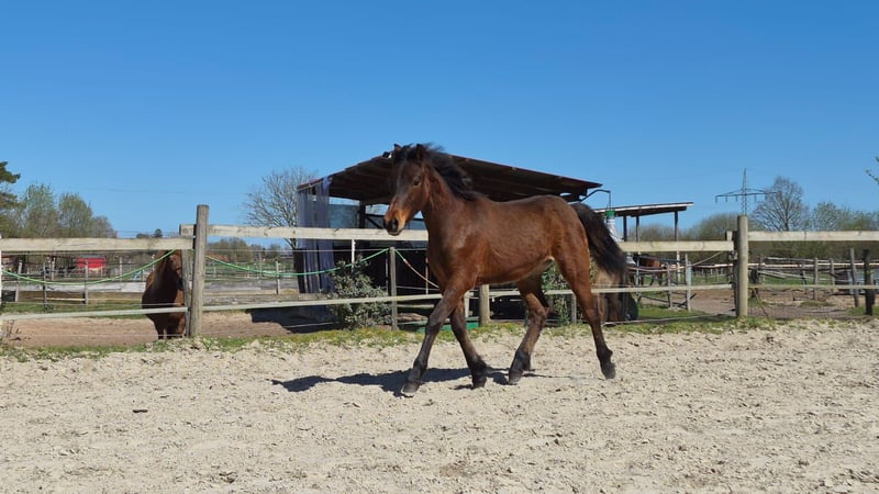 Aus unserer kleinen aber sorgfältig aufgebauten Connemara Zucht ist unser erstes Fohlen aus dem letzten Jahr zu verkaufen. JJ Cracker Jack hat über seinen in der Connemara Zucht sehr bekannten Vater eine alte und bewährte Zuchtlinie vererbt bekommen. Seine Mutter ist ebenfalls sorgfältig für die Zucht ausgesucht und in Celle als beste Stute im HB1 eingetragen. Er ist relmässig entwurmt, geimpft und schmiedefromm. 3. Bei der Bundesschau 2025. 1. Preis zusammen mit seiner Zuchtfamilie. Er ist reinerbig braun ohne Abzeichen und kennt bereits das Fohlen ABC