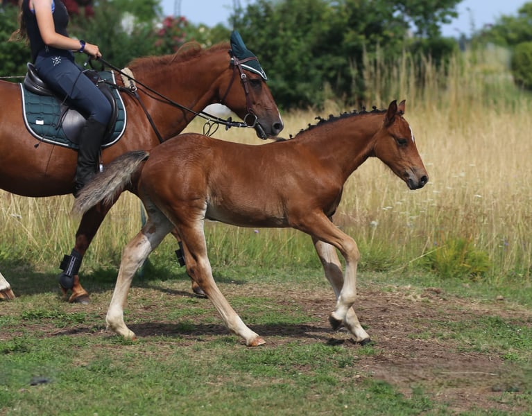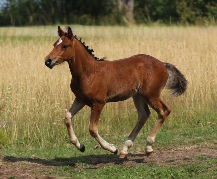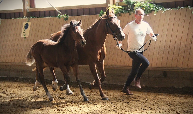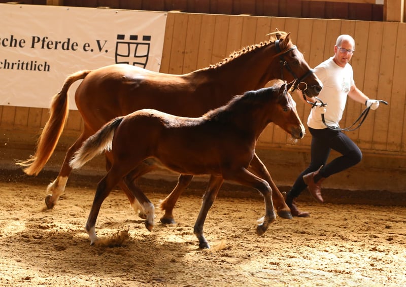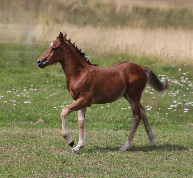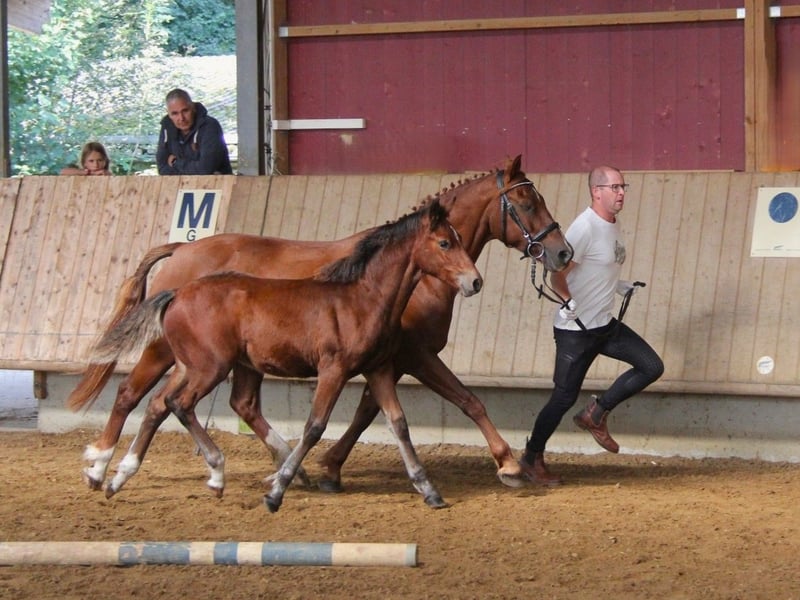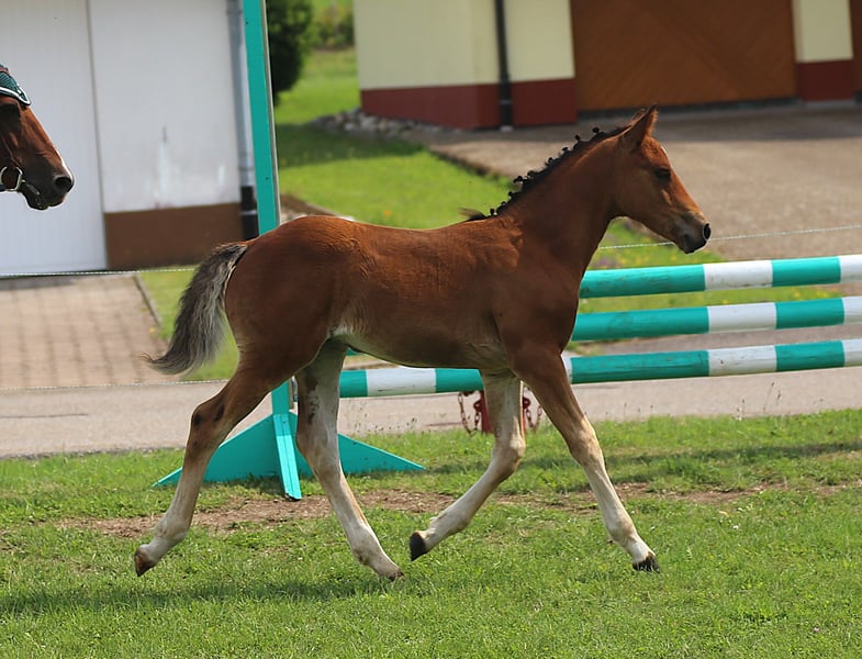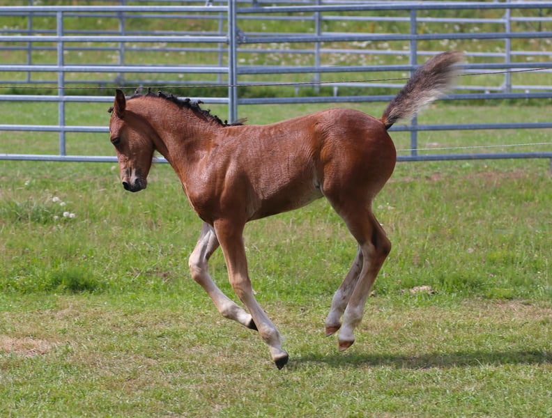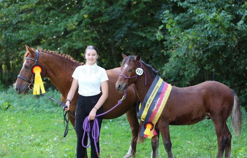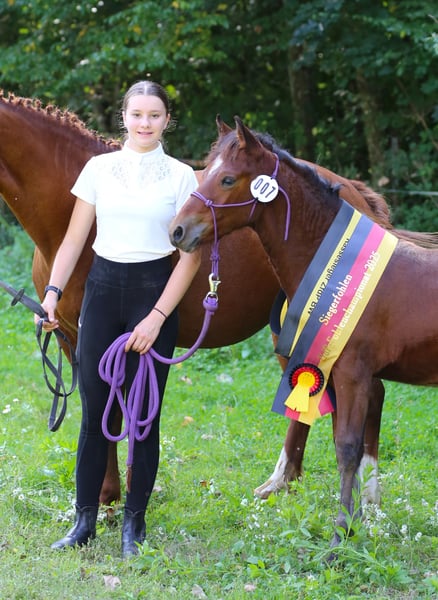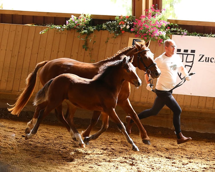 Connemara Championatsfohlen - Athletisch & Klug Hengst - Prince Pascal Dein zukünftiger Sport- und Freizeitpartner – Badger‘s Hill Prince Pascal: Pascal ist das vierte Fohlen unserer großartigen Stute Sahara Princess und das fünfte Fohlen von Birdmountain Younique. Er ist ein auffälliges, sensibles und äußerst kluges Connemara-Hengstfohlen mit sportlichem Körperbau, das seine Umgebung aufmerksam beobachtet. Geburtsdatum: 18.05.2025 Geschlecht: Hengst Rasse: Connemara Pony Geburtsort: Badger's Hill Ranch, 79875 Dachsberg, DE Stockmaß: Voraussichtlich ca. 145 cm Farbe: Brauner, kann Schimmel werden HWSD-Status: N/N Zuchtverband: ZfDP, Connemara Pony Titel: Championatsfohlen beim ZfdP Stuten- und Fohlenchampionat Baden-Württemberg 2025 Preis: CHF 4.200 Als Siegerfohlen der ZfdP Fohlenschau Baden-Württemberg 2025 überzeugte er durch korrekten Körperbau und überdurchschnittliche Grundgangarten, die ihm diesen Titel verdienten. Vater: Birdmountain Younique (Bundessieger 2024 in Kat. 3–4-jährige Hengste, Connemara Pony IG) Mutter: Sahara Princess (Klassensiegerin beim ZfdP Stutenchampionat Baden-Württemberg 2025) Vater der Mutter: Slackport Prince (Clifden Supreme Champion 2018) Vater Birdmountain Younique ist ein herausragender Connemara-Hengst, der 2024 als Bundessieger in der Kategorie der 3-4-jährigen Hengste ausgezeichnet wurde. Mit seinen harmonischen Proportionen, einem gut aufgesetzten Hals und stabilen Gliedmaßen besticht er nicht nur durch geschmeidige und ausbalancierte Bewegungen, sondern auch durch ein ausgeglichenes Temperament. Younique ist vielseitig einsetzbar und ideal für sowohl ambitionierte als auch Freizeitreiter. Seine Nachkommen, darunter Hercules, zeigen seine besten Eigenschaften - Eleganz, Freundlichkeit und eine harmonische Körperstruktur. Mutter Sahara Princess ist Klassensiegerin beim ZfdP Stuten- und Fohlenchampionat Baden-Württemberg 2025. Sie ist außergewöhnlich athletisch, fein an den Hilfen und verfügt über eine bemerkenswerte innere Klarheit. Ihr Vater Slackport Prince, 2018 in Clifden als Supreme Champion ausgezeichnet, bringt bestes Connemara-Blut in ihre Ahnentafel ein. Als weise Leitstute überzeugt Sahara Princess mit natürlicher Autorität durch Präsenz, Sensibilität und Verlässlichkeit. Seit vielen Jahren begleitet sie uns als zuverlässige Reit- und Zuchtstute und nimmt eine zentrale Rolle in unserer Stutenherde ein. Mit ihrer ruhigen Ausstrahlung und klaren Kommunikation bringt sie Struktur in die Gruppe und wird von Pferden wie Menschen gleichermaßen geschätzt. Mit ihrer Qualität als Reit- und Zuchtstute bringt Sahara Princess zudem hervorragende Nachkommen hervor, die ihr Exterieur, ihre Leistungsbereitschaft und ihren Charakter erkennbar weitertragen. Charakter & Körperbau Prince Pascal ist ein aufmerksames und neugieriges Fohlen, das seine Umgebung genau beobachtet und schnell auf neue Eindrücke reagiert. Er wirkt sehr wach und sensibel, dabei ausgeglichen und freundlich im Umgang. Besonders auffällig ist sein soziales und menschenbezogenes Wesen - er sucht aktiv Kontakt und zeigt sich stets offen und zugänglich. Im Herdenverband tritt er eher dominant auf, jedoch ohne Übertreibung, und behält dabei stets eine faire, angenehme Art. Wie auch die anderen Nachkommen von Princess zeigt er bereits jetzt eine außergewöhnlich kräftige, muskulöse Statur und eine natürliche Athletik. Seine Bewegungen sind kraftvoll, dynamisch und gleichzeitig gut ausbalanciert - vielversprechend für sein junges Alter. Ausbildung & Training Pascal ist noch sehr jung, zeigt sich im täglichen Umgang aber bereits erstaunlich kooperativ. Er lässt sich problemlos am Halfter führen, überall anfassen und genießt das Putzen ebenso wie kleine gesunde Leckereien zwischendurch. Er begegnet neuen Routinen mit Interesse und Vertrauen. Mit zunehmendem Alter wird er gemeinsam mit den anderen Jungpferden an eine altersgerechte Grundausbildung herangeführt - mit viel Ruhe, klaren Strukturen und positiven Erfahrungen. Ziel ist es, spielerisch eine gute Kinderstube zu vermitteln, Kraft und Balance aufzubauen und ihn behutsam auf die weitere Bodenarbeit vorzubereiten. Haltung Pascal wächst auf großen, naturnahen Weiden im Schwarzwald auf - zusammen mit seiner Mutter, den jüngeren Geschwistern und mehreren Ponys und Pferden. So hat er genug Platz, um sich frei zu bewegen, und die Umgebung fördert seine soziale Entwicklung. Das Gelände ist abwechslungsreich und stärkt seine Trittsicherheit, Ausdauer und sein Immunsystem. Wenn er ca. sechs Monate alt ist, wird er abgesetzt und kommt in eine Jungpferdeherde, in der er weiterhin in Gemeinschaft aufwächst und spielerisch dazulernt. Pascal wird regelmäßig entwurmt und demnächst altersgerecht geimpft. Standort & Weitere Informationen Pascal befindet sich in Dachsberg, DE, sehr nahe an der Schweizer Grenze. Auf Wunsch können wir eine Kastration und/oder den Import in die Schweiz arrangieren. Für weitere Informationen und Fragen stehen wir Ihnen gerne zur Verfügung Connemara-Ponys Vielseitig und stark, tragen Connemara-Ponys mühelos mittelgrosse Erwachsene. Sie sind natürliche Springer (typischerweise bis zu 1,2 Meter hoch und auf Leistungsebene bis zu 1,4 Meter) mit eleganten Bewegungen, sehr robust und bekannt für ihre hohe Intelligenz. In der Dressur konkurrieren sie typischerweise bis zu den Niveaus L und auf Leistungsebene bis zu M. Unsere gut erzogenen Connemaras sind frei von Verhaltensproblemen wie Kicken oder Beissen. Es ist eine Freude, mit ihnen zu arbeiten und hervorragende Ergebnisse zu erzielen.