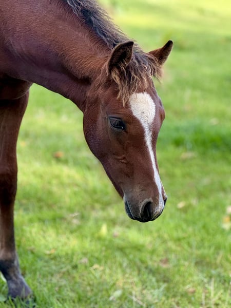 After being weaned in November, this expressive colt "Borghorsts Martini" is looking for a new owner. Martini is raised in a species-appropriate manner in a pasture with a herd of mares and foals. He is very herd-compatible and plays with the other foals. He is registered with the horse studbook in Schleswig-Holstein. His mother Silver Beauty is sired by Gvennic de Goariva x Silver Shadow, both ponies have been highly successful in international pony show jumping. His father Arda’s Murphy has produced licensed stallions throughout Europe, as well as award-winning mares and foals. Our foals are regularly dewormed, introduced to the farrier, and are halter-trained.