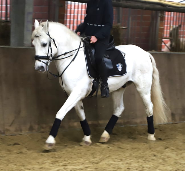 Connemara Gelding – Perfect for Leisure Riding! For sale is a lovely Connemara gelding, born in 2018. This grey impresses with his friendly nature and calm temperament. Standing at 146 cm (about 14.1 hh), he is ideally suited for recreational riding and demonstrates versatility in various activities. The gelding is healthy, regularly vaccinated, and presents a neat appearance. Well-trained and reliable in handling, he is looking forward to a new, caring family that will appreciate his talents. He is accustomed to open stable management. Barefoot and compact-built, he also comfortably suits taller riders. For more information or to arrange a viewing, please contact me at 0172 2734811. Come and see this charming leisure horse for yourself!