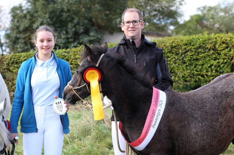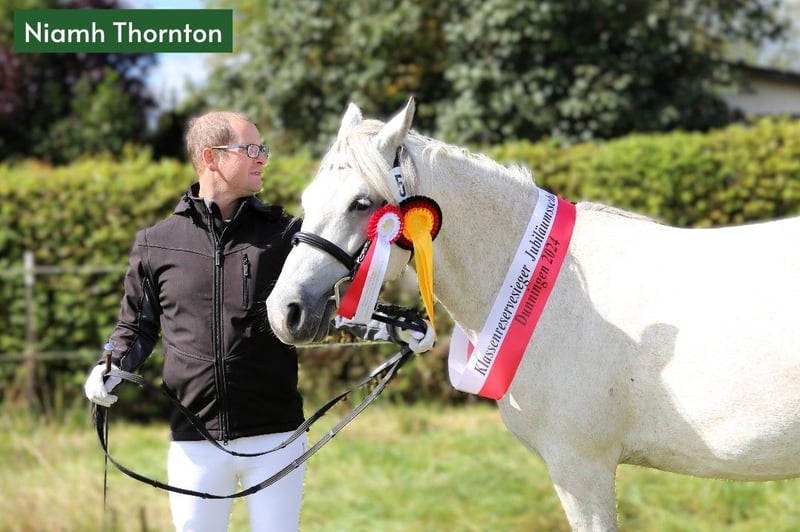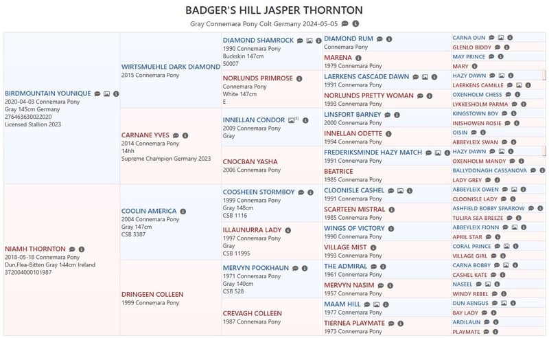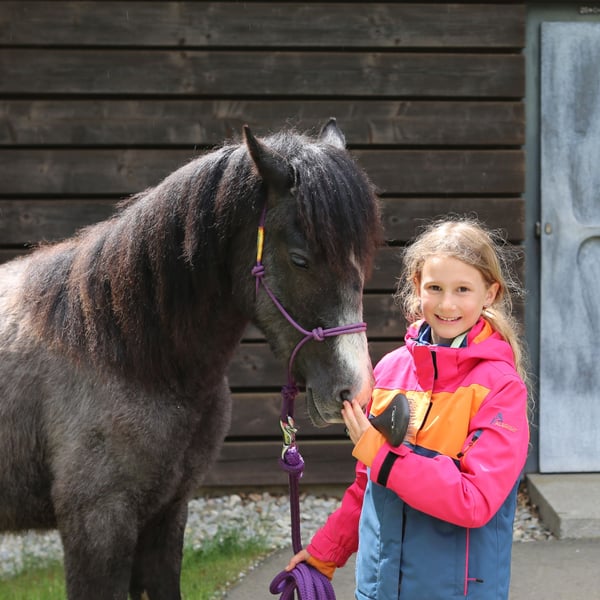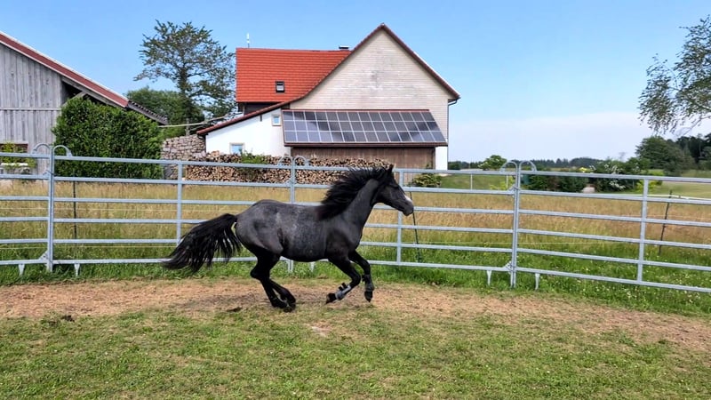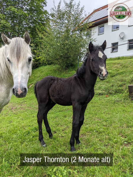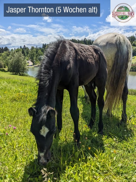 Dein zukünftiger Sport- und Freizeitpartner - Badger’s Hill Jasper Thornton: Jasper ist ein einjähriger Connemara-Jungwallach mit ruhigem, freundlichem Wesen und starker Menschenbezogenheit. Er ist ausgeglichen, angenehm im Umgang und lernt gerne - damit eignet er sich gut für Kinder, Einsteiger sowie ambitionierte Freizeit- und Turnierreiter. Seine eleganten, harmonischen Grundgangarten und seine gute Selbsthaltung machen ihn besonders geeignet für die Dressur. Er bewegt sich leichtfüßig und taktsicher. Seit Kurzem wird Jasper altersgerecht an das Freispringen herangeführt. Dabei zeigt er sich konzentriert, interessiert und mit sichtbarer Freude bei der Sache - ein spannender Ansatzpunkt für seine weitere Entwicklung. Als Reservesieger beim ZfdP Fohlenchampionat Baden-Württemberg 2024 konnte er bereits früh seine Qualität und Ausstrahlung zeigen. Basisdaten Geburtsdatum: 05.05.2024 Geschlecht: Wallach Geburtsort: Badger's Hill Ranch, Dachsberg, DE (nahe der Schweizer Grenze) Stockmaß: Voraussichtlich ca. 145 cm Farbe: Rappschimmel HWSD-Status: N/N Zuchtverband: ZfDP, Connemara Pony Titel: Reservesieger beim ZfdP Fohlenchampionat Baden-Württemberg, September 2024 in Dunningen Preis: EUR 6.000 Blutlinien Vater Birdmountain Younique (145 cm, Bundessieger 2024 in Kat. 3-4-jährige Hengste) Mutter Niamh Thornton (Graufalbe, 144 cm, Reservesiegerin beim ZfdP Stutenchampionat Baden-Württemberg) Vater der Mutter Coolin America (147 cm, bekannt für viele Nachkommen in Irland, u. a. Coosheen Stormboy) Vater Birdmountain Younique ist ein herausragender Connemara-Hengst, der 2024 als Bundessieger in der Kategorie der 3-4-jährigen Hengste ausgezeichnet wurde. Mit seinen harmonischen Proportionen, einem gut aufgesetzten Hals und stabilen Gliedmaßen besticht er nicht nur durch geschmeidige und ausbalancierte Bewegungen, sondern auch durch ein ausgeglichenes Temperament. Younique ist vielseitig einsetzbar und ideal für sowohl ambitionierte als auch Freizeitreiter. Seine Nachkommen, darunter Jasper, zeigen seine besten Eigenschaften - Eleganz, Freundlichkeit und eine harmonische Körperstruktur. Mutter Niamh Thornton ist eine elegante und anmutige Connemara-Stute, die 2024 als Reservesiegerin beim ZfdP Stutenchampionat Baden-Württemberg ausgezeichnet wurde. Sie zeichnet sich durch ihre geschmeidigen Gänge und ihr freundliches Wesen aus, was sie sowohl für Dressur als auch für Ausritte besonders geeignet macht. Mit ihren exzellenten Blutlinien, die auf bekannte Connemara-Hengste wie Coolin America und Coosheen Stormboy zurückgehen, zeigt sie eine bemerkenswerte Vielseitigkeit. Niamh ist eine zuverlässige Partnerin, die stets ihr Bestes gibt und auf ihren Reiter vertraut. Charakter Jasper ist sanft, unterwürfig und bildet starke Bindungen zu Menschen. Sein ausgeglichenes Temperament macht ihn zu einem idealen Partner vom Einsteiger bis zum fortgeschrittenen Reiter. Er ist leicht zu handhaben, freundlich und zeigt keine Unarten wie Schlagen oder Beißen. Gleichzeitig entwickelt er sich charakterlich genau wie seine Eltern: zuverlässig, feinfühlig und kooperativ. Im täglichen Umgang zeigt er sich aufmerksam, anhänglich und stets offen für neue Aufgaben. Bewegung Jasper überzeugt mit geschmeidigen und eleganten Bewegungen, die ihn besonders präsentabel und ideal für die Dressur machen. Sein eleganter, raumgreifender Trab fällt besonders positiv auf. Seit Kurzem wird er ans Freispringen herangeführt - mit großer Freude und hoher Konzentration ist er bei der Sache. Seine proportionale Konformation und schönen Gänge wurden bereits durch seinen Titel als Reservesieger beim ZfdP Fohlenchampionat bestätigt. Ausbildung & Training Jasper wird regelmäßig in der Führanlage altersgerecht bewegt, um Kondition und Muskulatur aufzubauen. Zusätzlich wird er mit Bodenarbeit und kleinen Herausforderungen spielerisch gefördert - stets ruhig, aufmerksam und mit viel Vertrauen zum Menschen. Jasper nimmt regelmäßig an Ausritten und Spaziergängen mit anderen Pferden und Ponys teil. Er ist gut erzogen, lässt sich problemlos führen, striegeln und wird regelmäßig geimpft sowie entwurmt. Seine Hufe werden regelmäßig geschnitten, und er hat bereits mehrere Anhängerfahrten mit Bravour gemeistert. Haltung Jasper wächst auf den weiten, naturbelassenen Weiden des Schwarzwaldes auf, was seine Trittsicherheit und Kondition stärkt und ihm ein starkes Immunsystem verleiht. Aktuell lebt Jasper in einer harmonischen Jungpferdegruppe mit gleichaltrigen Freunden und Halbgeschwistern. Die großzügige Offenstallhaltung mit täglichem Weidegang unterstützt seine gesunde körperliche und soziale Entwicklung. Diese Umgebung fördert seine soziale Entwicklung und stärkt seine Fähigkeiten im Umgang mit anderen Pferden. Standort & Weitere Informationen Jasper befindet sich in Dachsberg, DE, sehr nahe an der Schweizer Grenze. Auf Wunsch können wir den Import in die Schweiz arrangieren. Für weitere Informationen und Fragen stehen wir Ihnen gerne zur Verfügung.