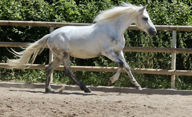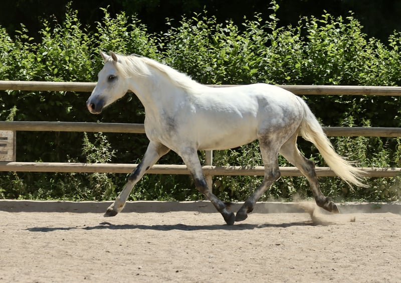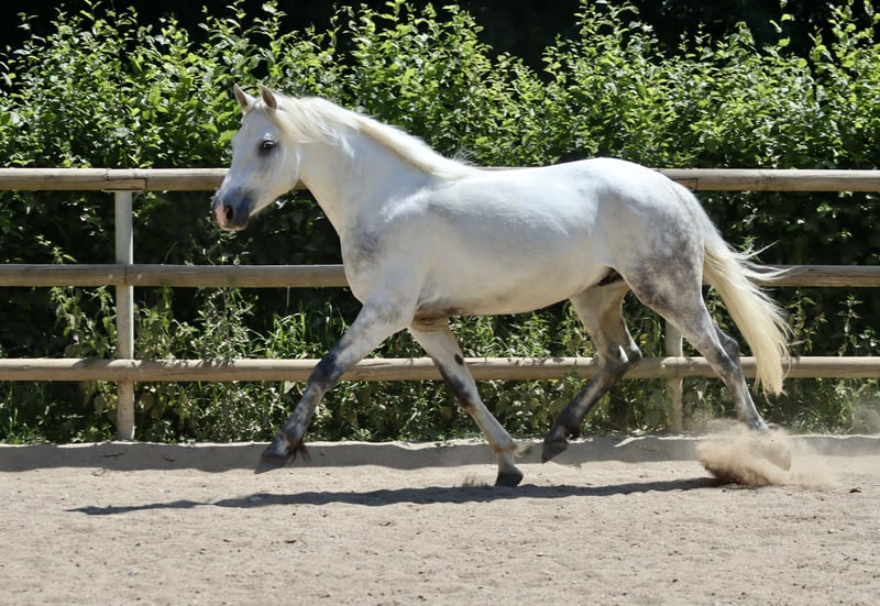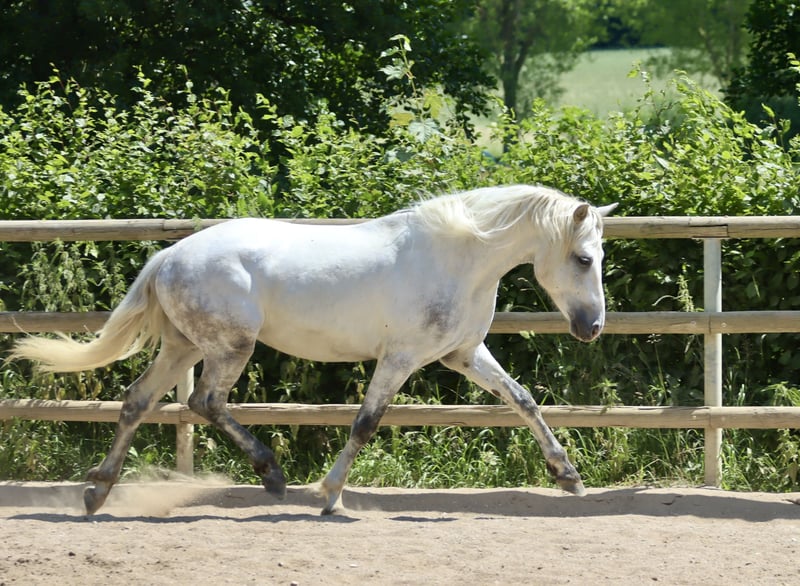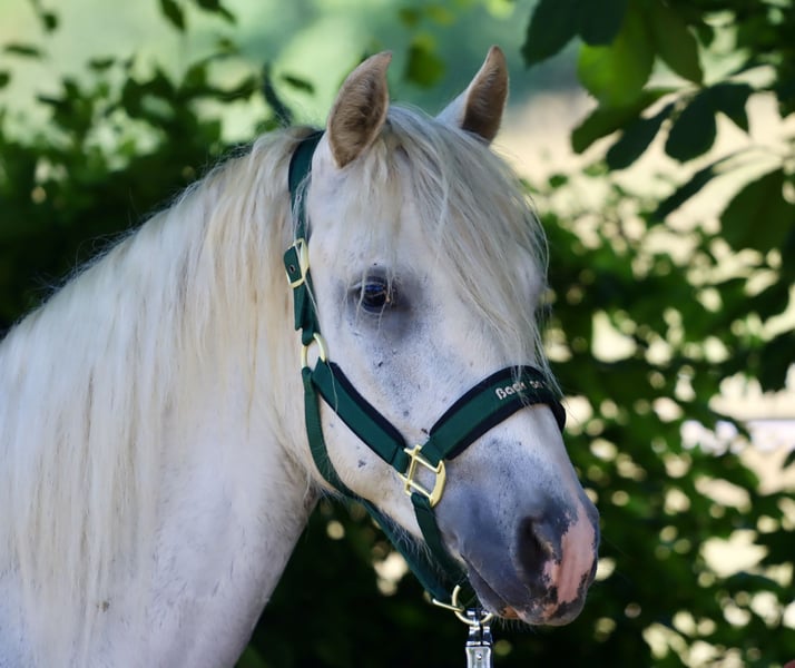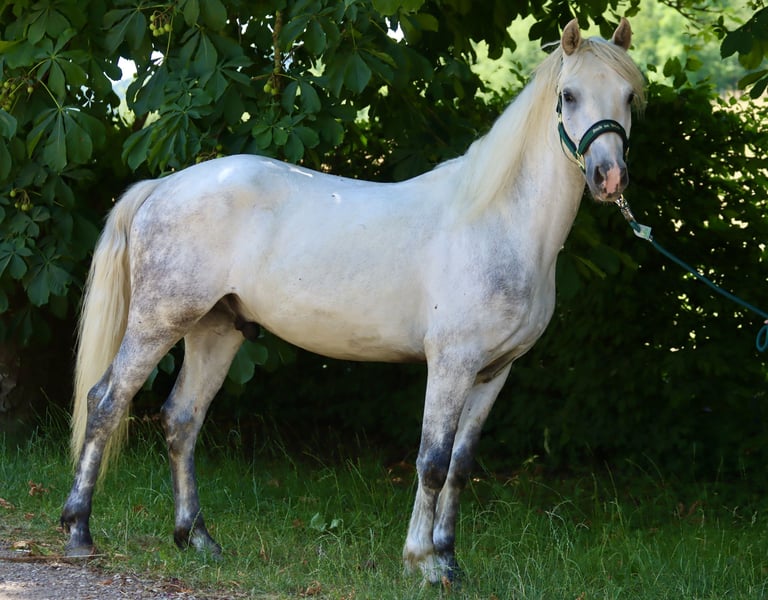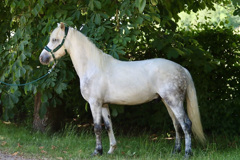 Sucht ein 5 * Zuhause: Wirthsmühle Denzel geb. 01.04.2022 V.: FN BuPrH WM Dark Diamond M.: StPrS WM Sharline Stockmaß: ca. 1,45m, Endmaß: ca. 1,47m Farbe: Schimmel HWSD: N/N Zum Verkauf steht ein 3-jähriger Connemara-Wallach mit tollem Charakter und sehr guten Grundgangarten mit aktiver Hinterhand. Aktuell ca. 145 cm, wächst noch – Schimmel, brav im Umgang, sehr gute Abstammung. Anfang des Jahres anlongiert, kennt Sattel, Trense und Reitergewicht im Schritt, Trab und Galopp. Zeigt sich dabei lernwillig, klar im Kopf und ausgeglichen – ideal für Freizeit, Gelände oder spätere Turniere.
