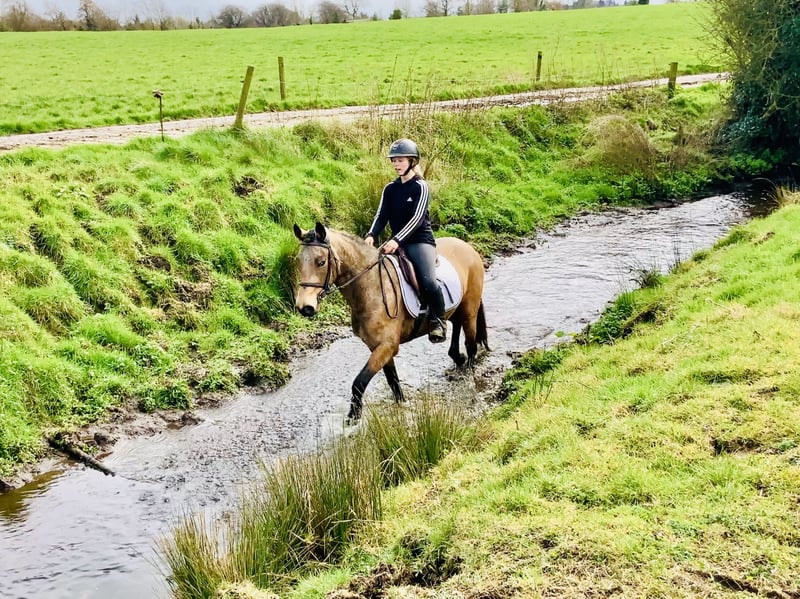 Max ist ein 4-jähriger, reinrassiger Connemara-Dun-Wallach mit einem Stockmaß von 14,1 hh, der voraussichtlich im Ponymaß bleiben wird und somit ein idealer Kandidat für die Zukunft im Spring- oder Vielseitigkeitssport ist. • Er ist ein sehr mutiges, ehrliches und athletisches junges Pony mit einer großartigen Arbeitseinstellung und dem natürlichen Talent, mit dem richtigen Reiter weit zu kommen. • Max besitzt alle Eigenschaften für den Spitzensport, denn er vereint Athletik, Rittigkeit und ein hervorragendes Temperament. • Er ist ein sehr guter Beweger mit taktreinen, ausbalancierten Grundgangarten und verfügt über sehr gute Exterieurmerkmale, darunter eine schöne Oberlinie und genügend Rahmen. • Max lässt sich leicht in Anlehnung reiten und geht angenehm am weichen Snaffle-Gebiss, wodurch er für Reiter sehr komfortabel und angenehm zu reiten ist. • Er eignet sich besonders für erfahrene springorientierte Kinder oder ambitionierte junge Reiter, die ihr nächstes Spring- oder Vielseitigkeitspony selbst ausbilden möchten. • Max ist ehrlich und mutig am Sprung und zeigt auch im Gelände großes Talent, wobei er alles gelassen und selbstbewusst meistert. • Im Umgang ist er ein sehr freundliches und unkompliziertes Pony, das sich leicht einfangen, beschlagen, verladen, reiten und im täglichen Umgang handhaben lässt. • Er geht alleine oder in Gesellschaft ins Gelände, ist sicher auf freien Flächen und verhält sich ruhig im Straßenverkehr. • Max hat keine Stalluntugenden und kann jederzeit tierärztlich untersucht (AKU) werden. • Der Preis beinhaltet die Lieferung zu Ihrem Stall innerhalb des Vereinigten Königreichs, und ein Umtausch ist möglich, falls Sie nicht zufrieden sein sollten. • Bitte sehen Sie sich sein Video an und kontaktieren Sie mich jederzeit telefonisch unter 00353 868077626 oder per E-Mail an gertytynan@gmail.com, wenn Sie weitere Informationen wünschen.