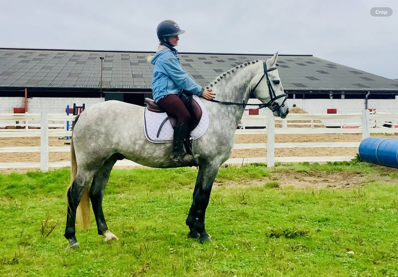 Perfect Beginner Pony – Safe, Well-Mannered & Relaxed – 4-Year-Old Purebred Connemara Gelding Here comes Silver, an incredibly sweet 4-year-old purebred Connemara gelding standing at 1.47 m (14.2 hh). With his calm and friendly nature, Silver is a true dependable pony – absolutely safe, patient, and straightforward in daily handling and under saddle. Silver is easy in every way – well-behaved for the farrier, loading-friendly, easy to catch, calm in traffic, and a real gem to handle. Under saddle, he is reliable and uncomplicated. He never gets strong or overly exuberant and always offers trust to his rider. Silver is balanced yet eager to work and strives to please – the perfect pony for young or inexperienced riders. Visually, he is a real eye-catcher with a lovely head and harmonious build. He moves with three rhythmic, expressive basic gaits, has a soft mouth, and a great character. In jumping, he shows a lot of talent and honesty, having been worked up to 90 cm and is always ready to help his rider. Silver would be the perfect pony club pony – he safely takes young riders from their first cross rails to the higher levels. He provides security, is fun to ride, and is performance-ready enough to grow with his rider. He is fully registered with complete Connemara lineage: Dunloughan Troy x Coral Star x Mervyn Kingsmill – a combination that stands for quality, character, and reliability. Silver has no stable vices, is open to any veterinary examination, and has been trained with the utmost care. The price includes delivery to your stable in the UK, and an exchange is possible if not satisfied. Watch the video and feel free to contact me anytime at 00353868077626 or via email at gertytynan@gmail.com.